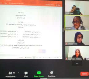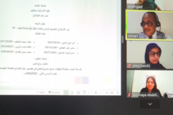 نظّم قسم علم الاجتماع في كليّة الإنسانيّات والعلوم جلسة افتراضيّة لمناقشة مشاريع التّخرج للطّلبة المتوقّع تخرّجهم نهاية هذا الفصل الدّراسيّ، وذلك يوم الأربعاء الموافق:21/4/2021، تمام الثّامنة والنّصف مساءً.