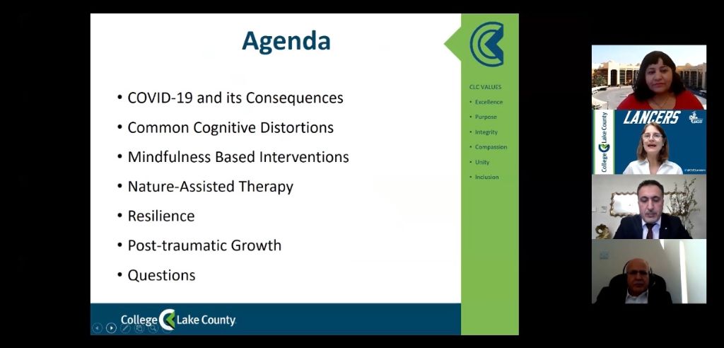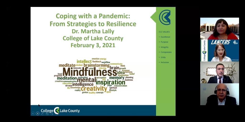 نظمت كلية الانسانيات والعلوم في جامعة عجمان ندوه عن بعد بعنوان " التعامل مع الجائحة: من الاستراتيجية إلى الصلابة النفسية " حيث ناقشت الدكتورةمارثا لالي ، بروفيسور في علم النفس ، من كلية ليك كاونتي ، التأثير الخفي على الأكاديميين ومدى ارتباطه بالقلق ، وكذلك طرق تخفيف القلق باستخدام استراتيجيات اليقظه الذهنية ، وكيفية الوصول الى الصلابة النفسية في الأوقات العصيبة. لقد كانت بالفعل بداية رائعة للتعاون بين جامعةعجمان وكلية مقاطعة ليك