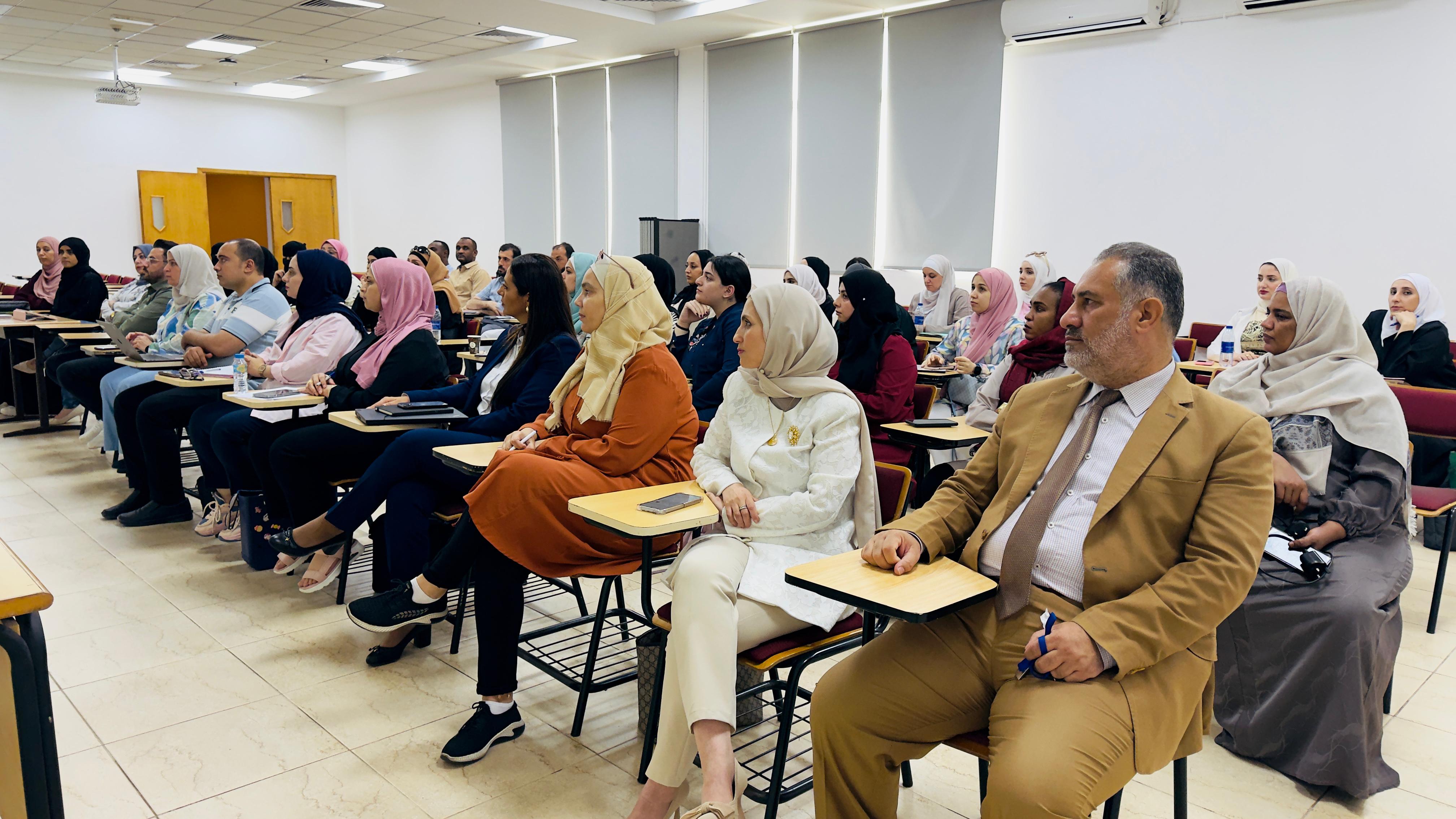 استهدفت الورشة الطلاب المسجلين في مقرر علم النفس التربوي ضمن برنامج الدبلوم المهني العالي في التدريس، حيث قدمت الأستاذة نور للطلبة استراتيجيات وأدوات عملية لدعم الطلاب ذوي الاحتياجات التعليمية الخاصة وصعوبات التعلم في الفصول الدراسية اليومية. وقد حرصت الأستاذة نور أبو سنينة على إشراك الحضور في مناقشات وأنشطة تفاعلية، مشددة على أهمية التعليم المتمايز، والدعم الفردي، وتعزيز ثقافة التعاطف والدمج.