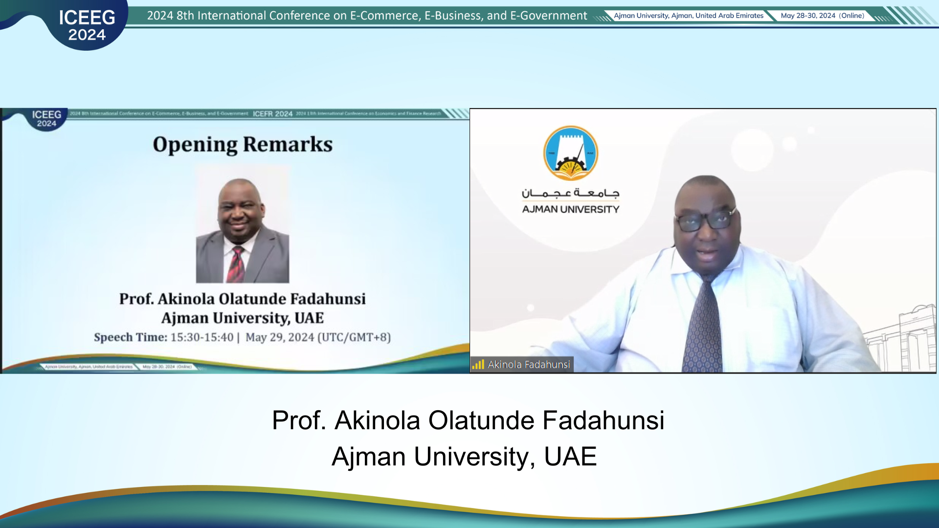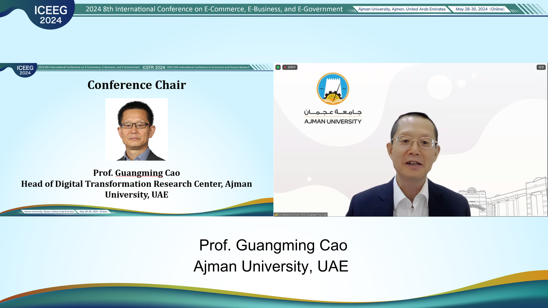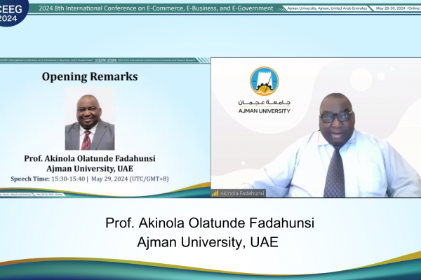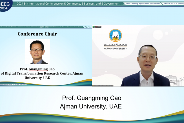 استضافت جامعة عجمان المؤتمر الدولي للتجارة الإلكترونية والحكومة الإلكترونية (ICEEG 2024) في نسخته الثامنة، والمؤتمر الدولي للبحوث الاقتصادية والمالية والإدارية (ICEFMR 2024) في نسخته الثالثة عشر، والذي عقد في الفترة من 28 إلى 30 مايو، بهدف تعزيز التعاون الدولي وتبادل المعرفة. وأدار البروفيسور قوانغمينغ كاو، مسؤول مركز أبحاث التحول الرقمي المؤتمرات الافتراضية، التي تضمنت كلمة ترحيبية من البروفيسور أكينولا فاداهونسي، عميد كلية إدارة الأعمال.