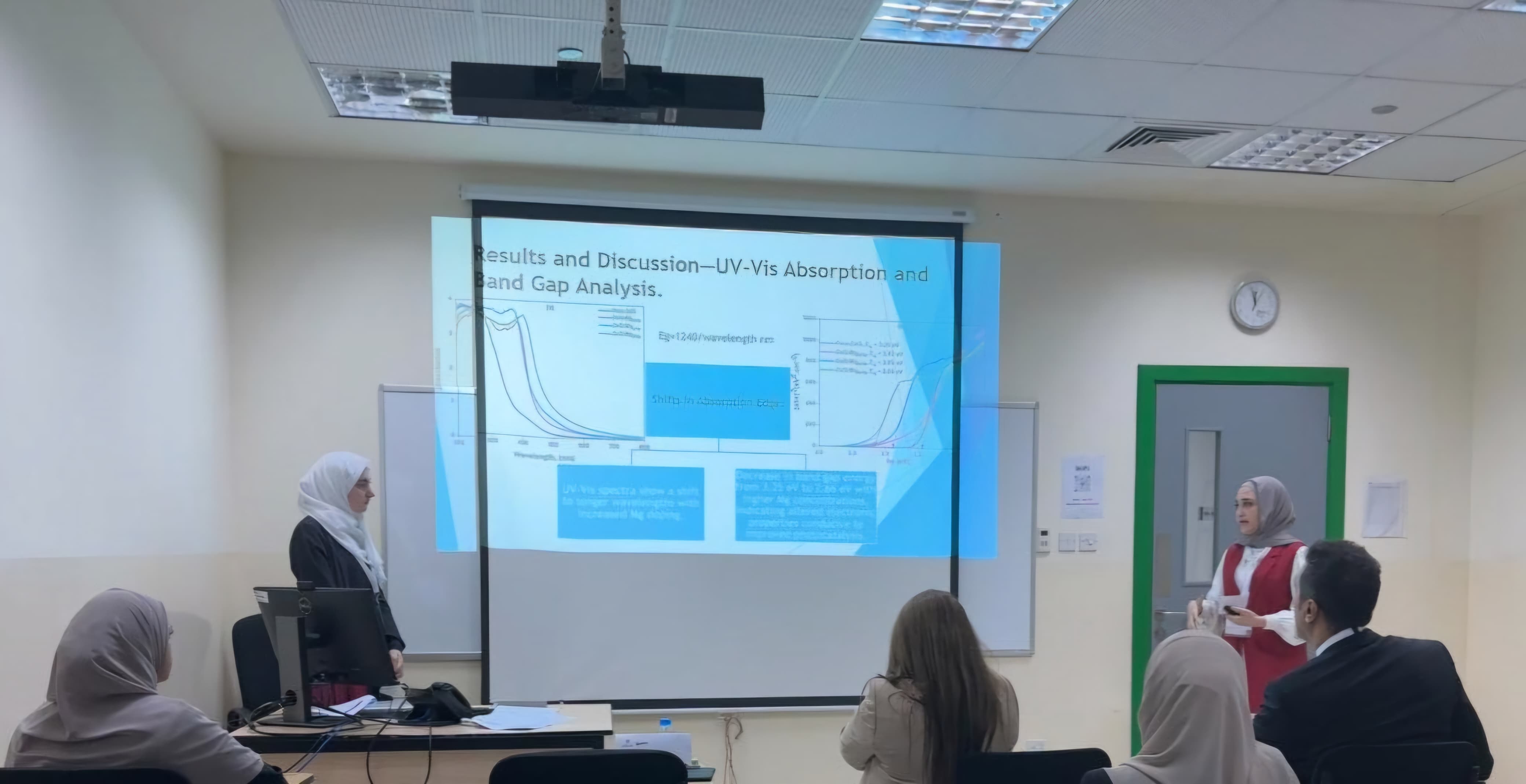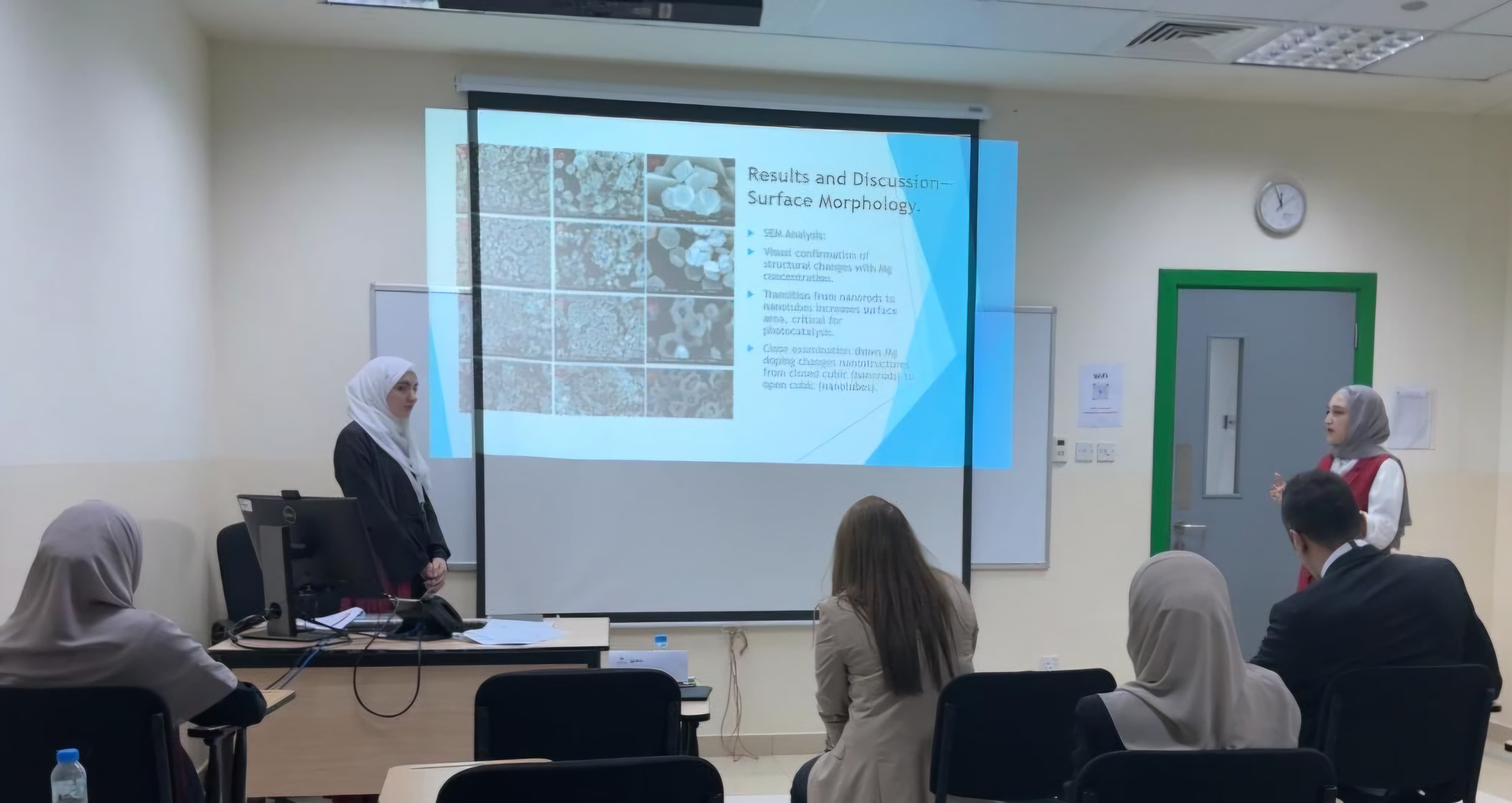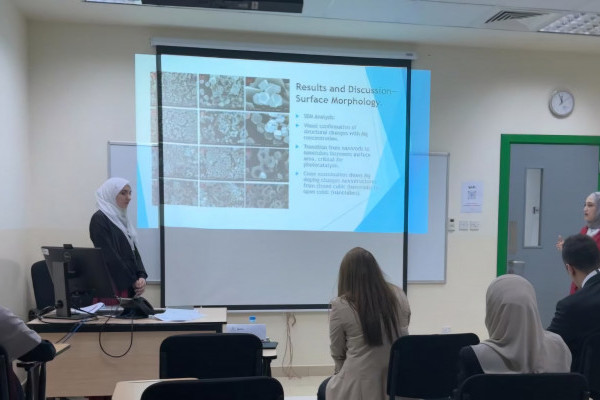 وفي تعليقها على هذا الإنجاز، قالت الطالبة بيان راضي: "أنا فخورة جداً بالحصول على هذه الجائزة. وأود أن أشكر أستاذتي الدكتور زيود على دعمه لنا وتشجيعنا على المشاركة في مثل هذه الفعاليات العلمية، التي تعزز من قدراتنا البحثية ومهاراتنا الأكاديمية."