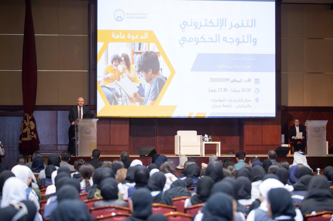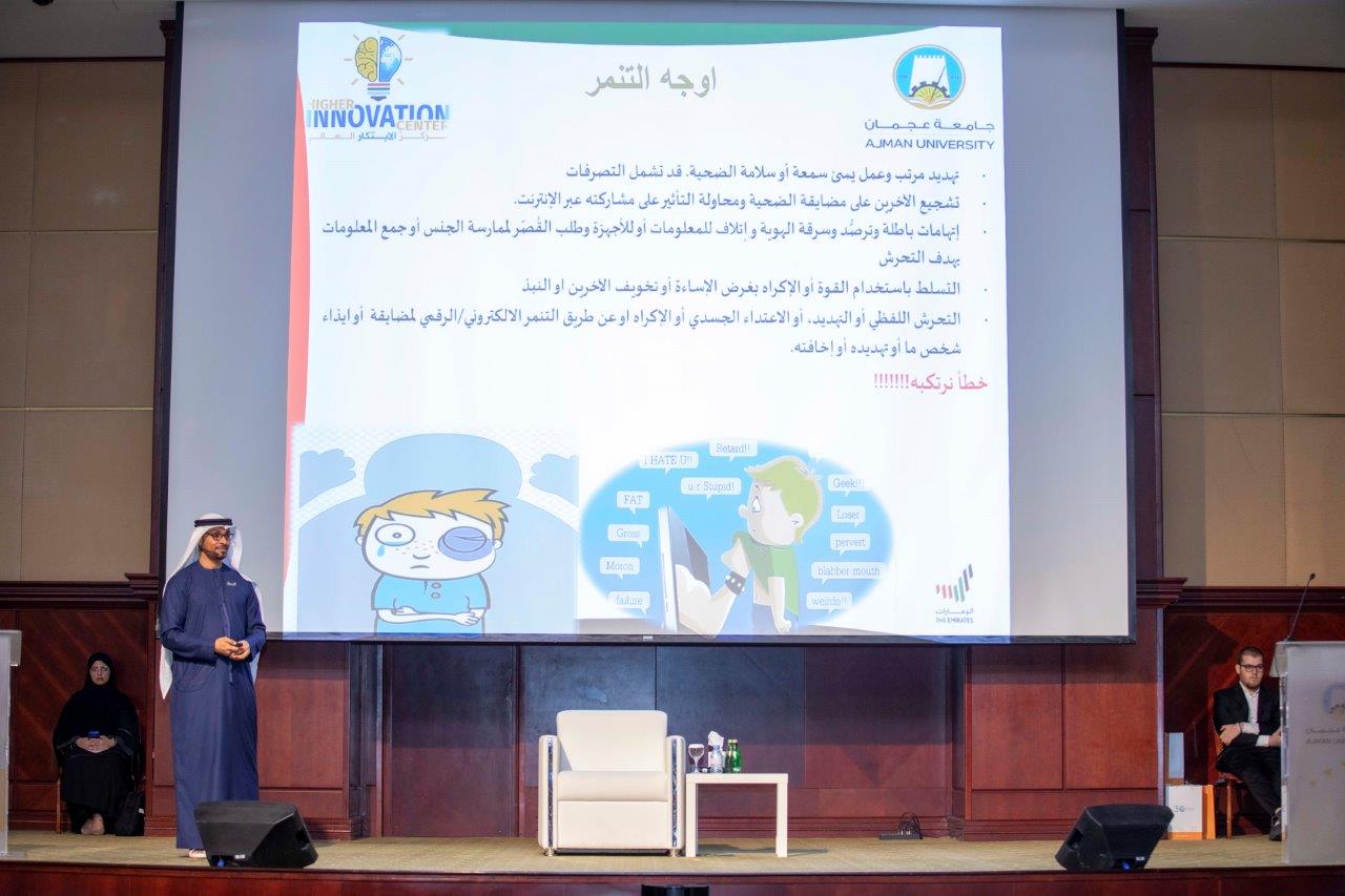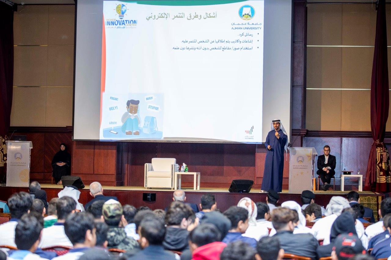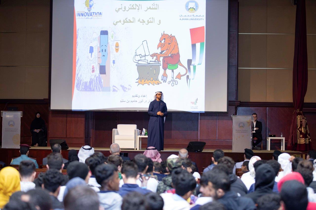 نظمت جامعة عجمان ورشة عمل متخصصة بعنوان "التنمّر الإلكتروني والتوجه الحكومي" واستضافت فيها المستشار د. أنور حاميم بن سليَّم، المدرب دولي في الإبداع والابتكار واستشراف المستقبل، للحديث عن هذه الظاهرة التي انتشرت في المجتمعات وأصبحت بحاجة إلى وقفة من المسؤولين وأصحاب القرار للحد منها والتصدي لآثارها المدمرة.