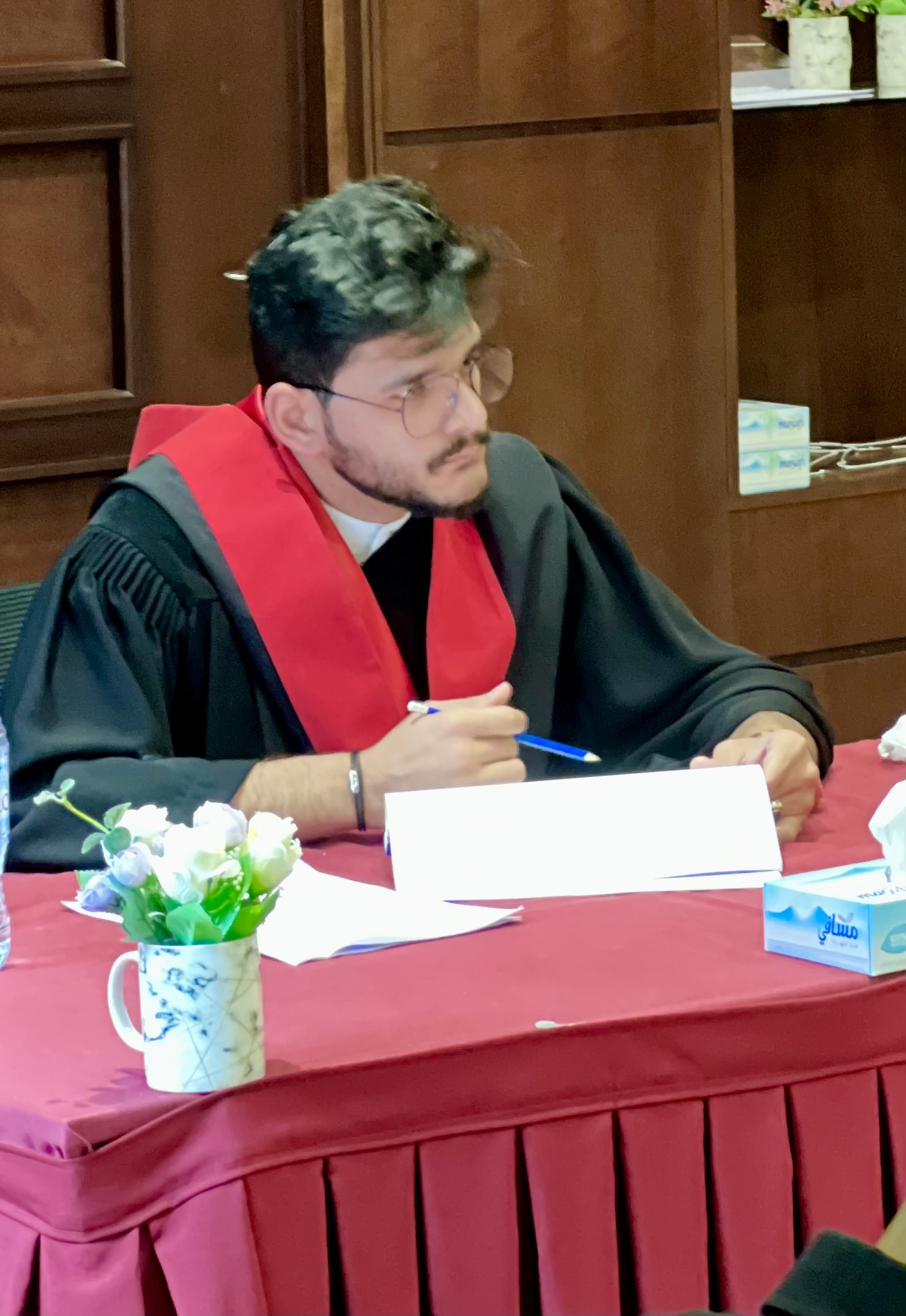 تمت مناقشة رسالة الماجستير في تخصص القانون الخاص للطالب بكر قيس حسن بعنوان "دور الروبوت في إبرام العقود - دراسة تحليلية" بحضور أعضاء لجنة المناقشة والأستاذ المشرف على الرسالة، وذلك في تمام الساعة الواحدة من ظهر يوم الأربعاء الموافق 15-3-2023.