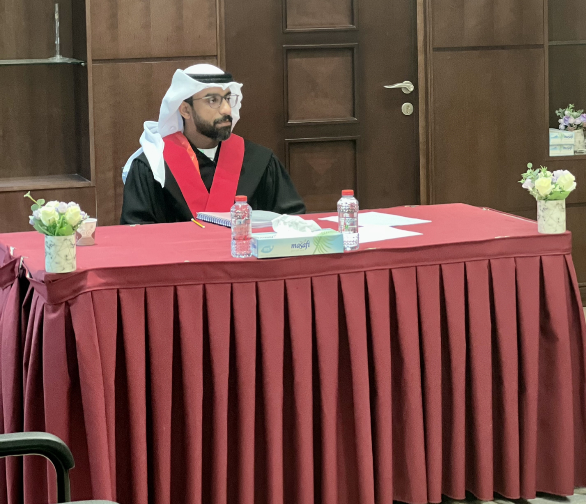 تمت مناقشة رسالة الماجستير في تخصص القانون العام للطالب خالد العبدولي بعنوان "الآثار الناجمة عن جائحة كورونا على الالتزمات التعاقدية في العقود الإدارية (دراسة مقارنة)، بحضور أعضاء لجنة المناقشة والأستاذ المشرف على الرسالة وذلك في تمام الساعة العاشرة من صباح يوم الأربعاء الموافق 22-03-2023.