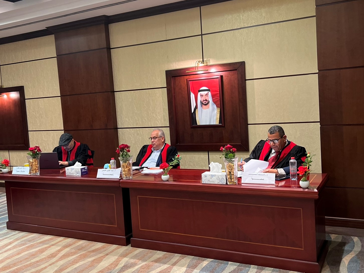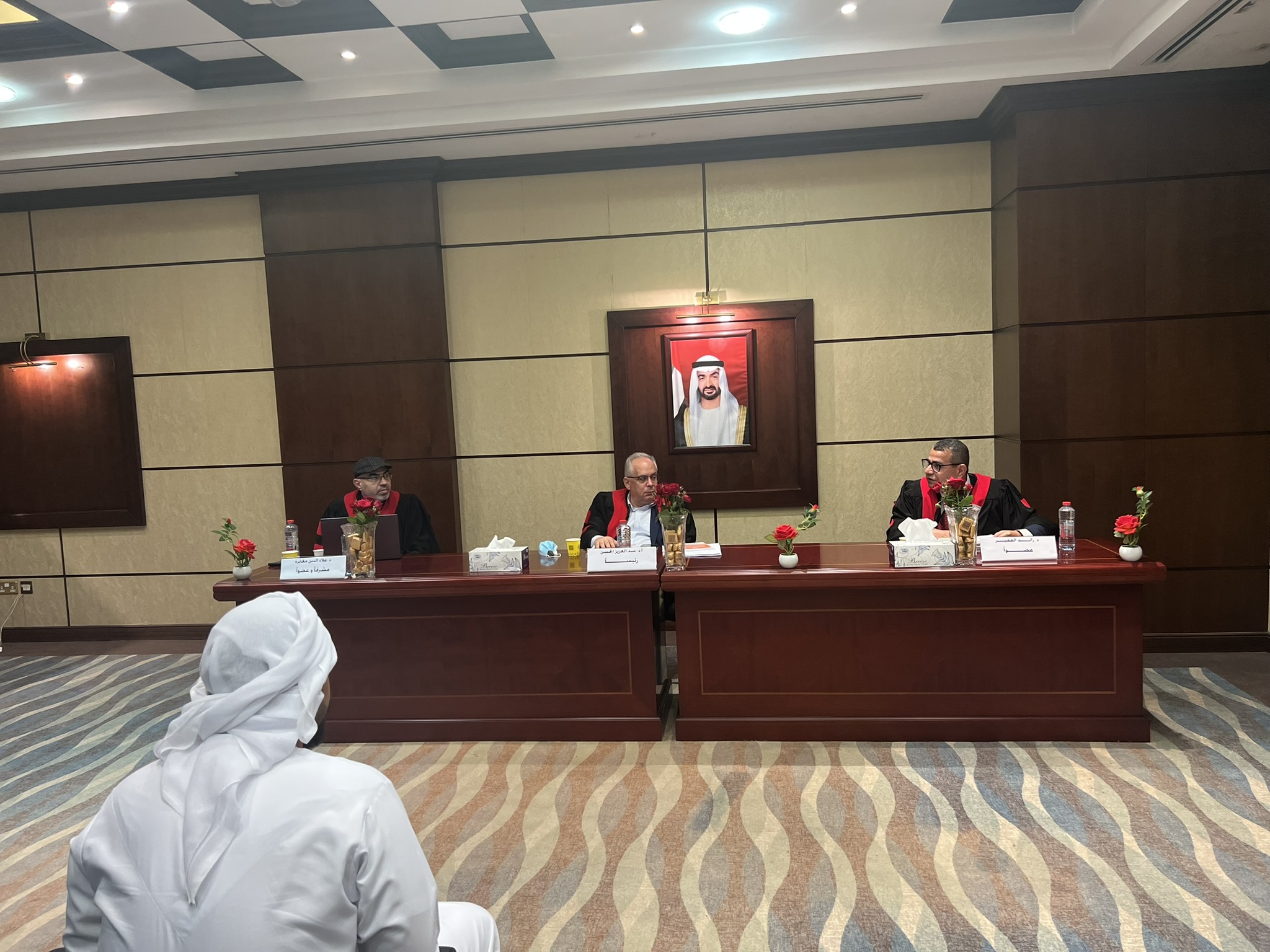عقدت كلية القانون في جامعة عجمان مناقشة رسالة ماجستير في تخصص القانون العام للطالب سهيل حمدان الزيودي بعنوان "إجراءات الملاحقة والتحقيق في الجرائم الإلكترونية في دولة العربية المتحدة - دراسة مقارنة" - وذلك في تمام الساعة الحادية عشر صباحاً من صباح يوم الاربعاء الموافق 08-02-2023، وأجيزت الجلسة بحضور لجنة المناقشة من كل من السادة الأستاذ الدكتور عبدالعزيز الحسن، رئيساً و أستاذ في القانون الجنائي، كلية القانون، جامعة عجمان؛ الدكتور رائد الفقير، عضواً وأستاذَ مشارك في القانون الجنائي، كلية القانون، الجامعة الأمريكية في الإمارات، د. علاء الدين مغايرة، عضواً ومشرفاً وأستاذ مساعد في القانون الجنائي، كلية القانون، جامعة عجمان.