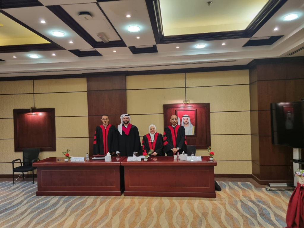 تمت مناقشة أطروحة الماجستير في تخصص القانون التجاري للطالب علي حسن الأميري بعنوان: "نحو تنظيم قانوني موحد لأحكام الإعلان التجاري في دولة الامارات العربية المتحدة"، وأجيزت الجلسة بحضور لجنة المناقشة المكونة من كل من السادة الأستاذ الدكتورة زينة غانم عبد الجبار رئيساً ومشرفاً، كلية القانون، جامعة عجمان؛ الدكتور صالح الشرايعة، عضواً، كلية القانون، جامعة الامارات العربية المتحدة؛ الدكتور العروسي الشملالي، عضواً، كلية القانون، جامعة عجمان.