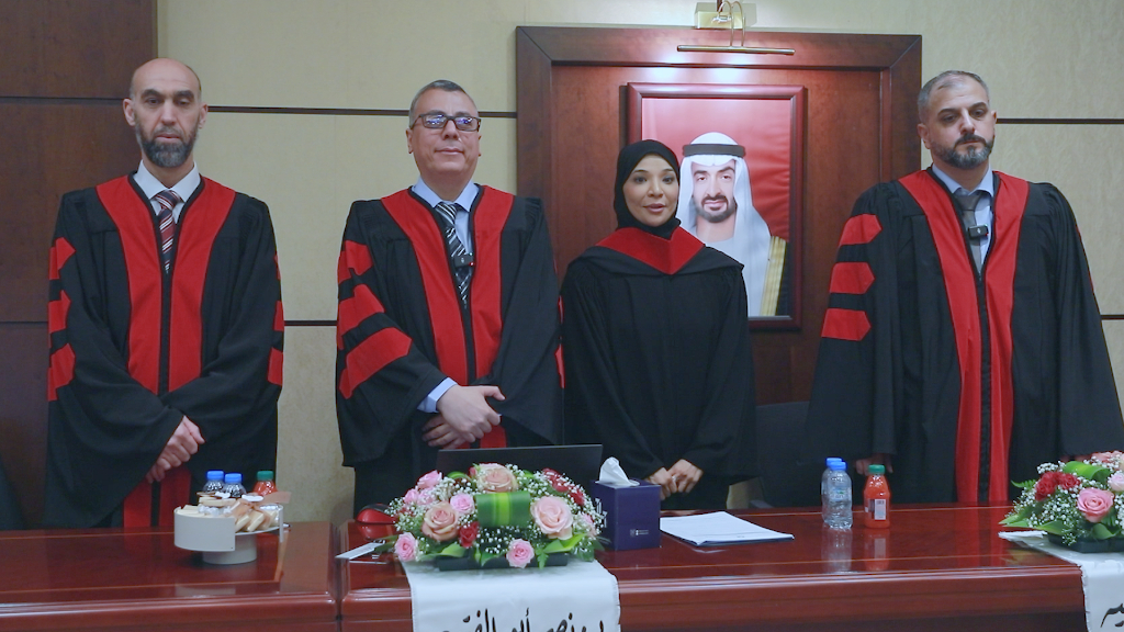 تمت مناقشة رسالة الماجستير في تخصص القانون الخاص للطالبة نورة بلال الطنيجي، بعنوان "دور القاضي المدني بين مبدأ الحياد و السلطة التقديرية - دراسة في الاجتهاد القضائي الإماراتي"، وأجيزت الجلسة بحضور لجنة المناقشة المكونة من كل من السادة الدكتور نصر أبو الفتوح، رئيساً، كلية القانون، جامعة عجمان؛ الدكتور مراد بن صغير، عضواً، كلية القانون، جامعة الشارقة؛ الدكتور بيير ماليه، مشرفاً وعضواً، كلية القانون، جامعة عجمان.