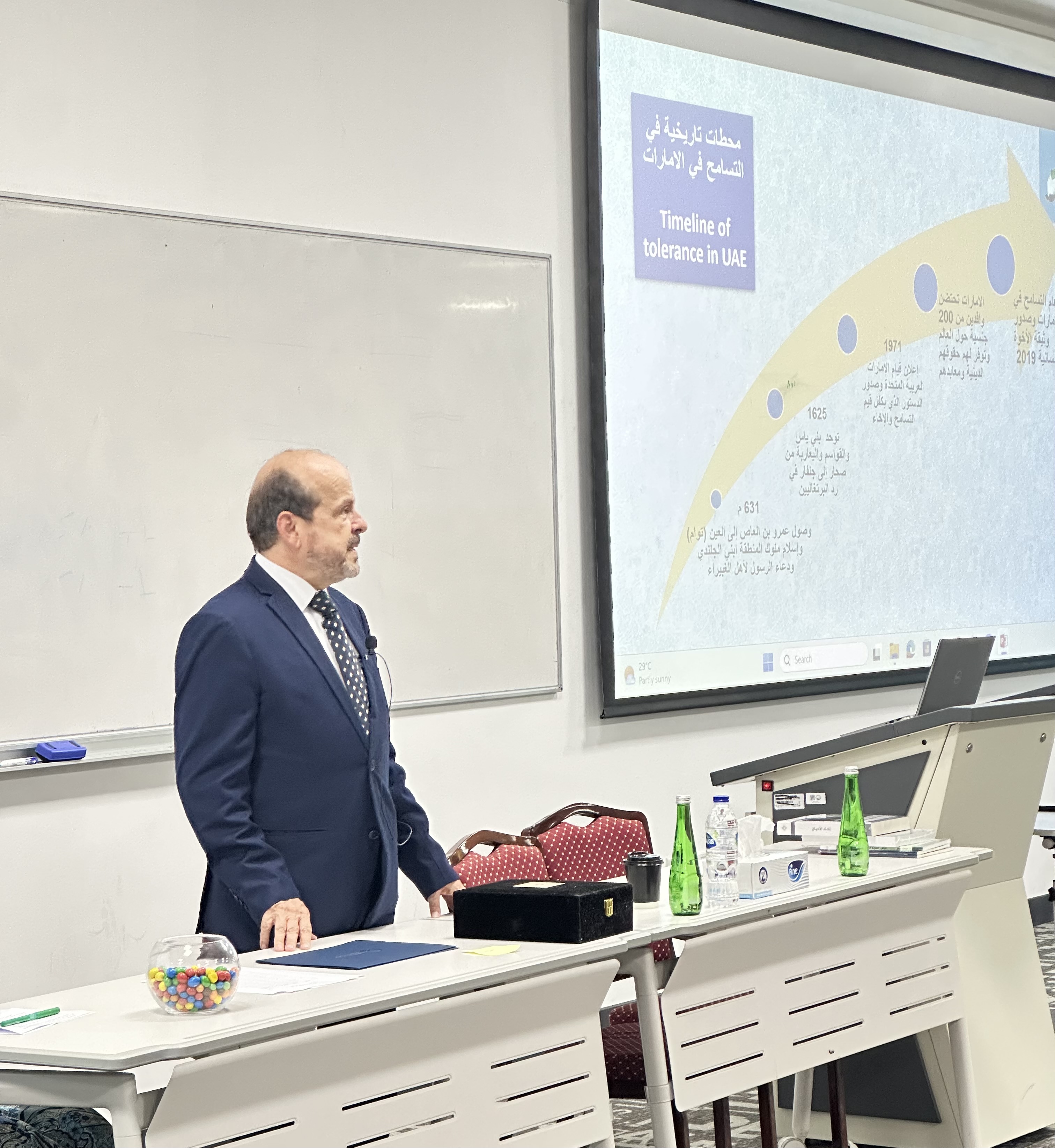 في إطار حرص كلية القانون في جامعة عجمان على ترسيخ القيم المجتمعية وغرس مفاهيم العدالة والتسامح لدى الطلبة، نظمت الكلية يوم الأحد الموافق 17 نوفمبر 2025، ورشة عمل بمناسبة اليوم العالمي للتسامح، بعنوان: