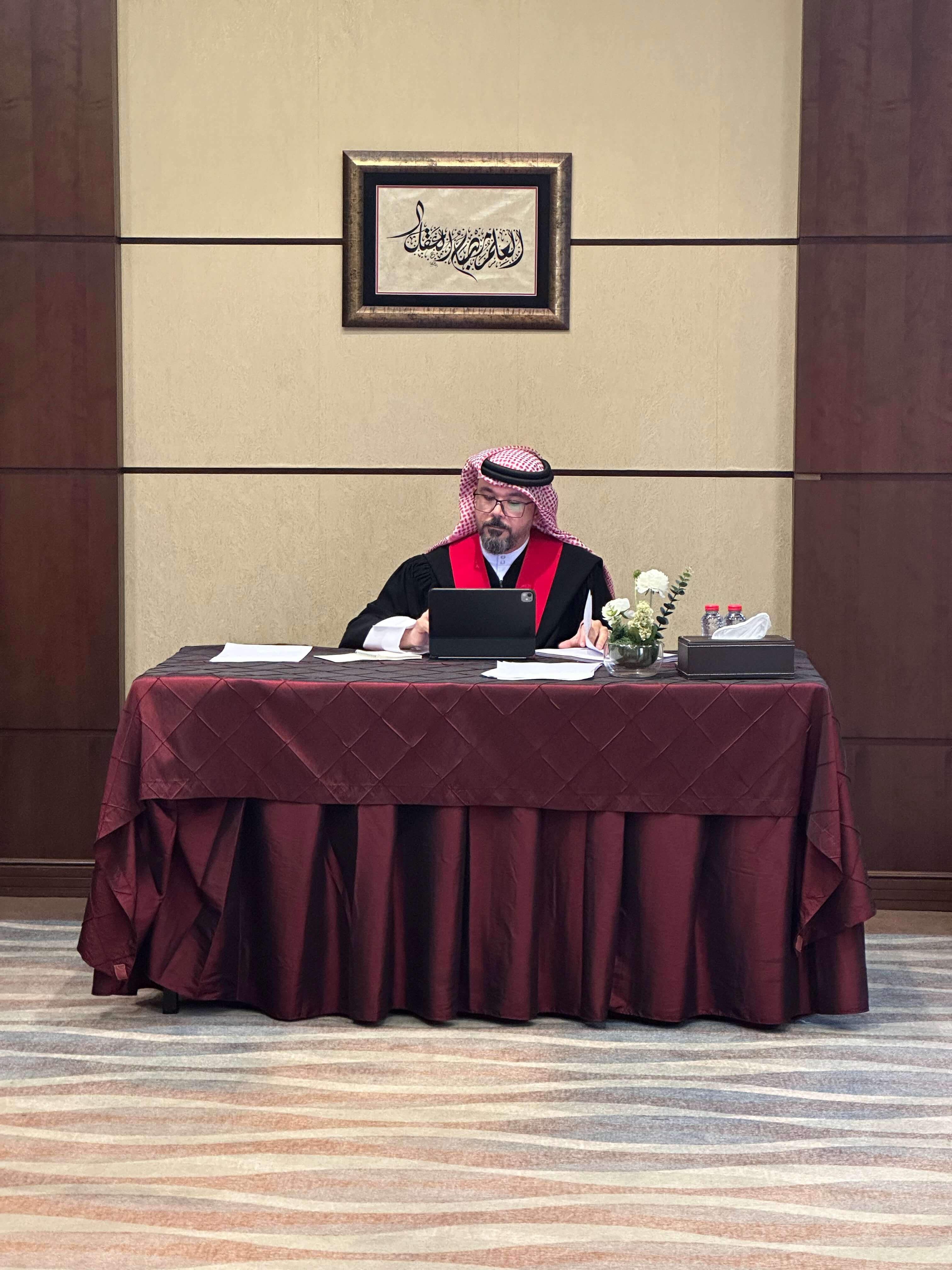 وقد تألفت لجنة الحكم والمناقشة من نخبة من المتخصصين في القانون، وهم: