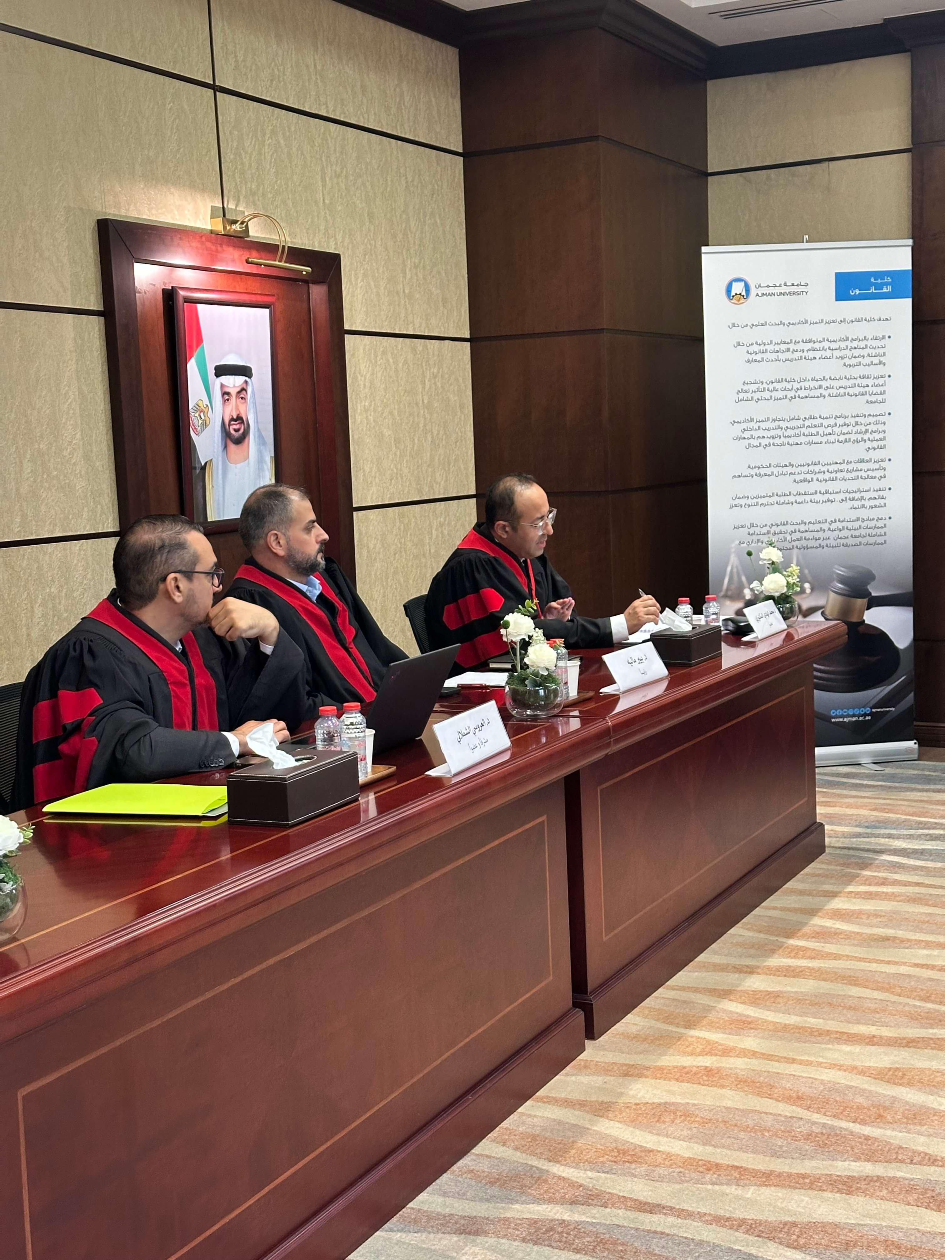 في إطار دعمها للتميز الأكاديمي والبحثي، عقدت كلية القانون بجامعة عجمان، يوم الجمعة الموافق 14 نوفمبر 2025، الساعة 9:00 صباحا، جلسة الحكم على أطروحة الماجستير في القانون الخاص المقدمة من الطالب أيمن أحمد الشميلي، بعنوان: