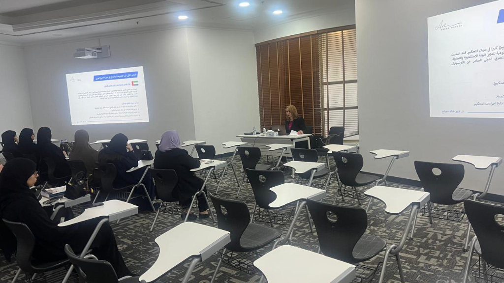 ضمن الأنشطة الأكاديمية بكلية القانون في جامعة عجمان، قدّمت الدكتورة عبير مصلح محاضرة متخصصة بعنوان: "التحكيم في دول الخليج العربي: القوانين والتطورات الحديثة"، وذلك يوم الثلاثاء الموافق 29 أبريل 2025، لطلبة مساق "الإجراءات المدنية 1".