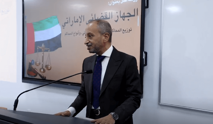 وتناولت الورشة الهيكل التنظيمي للجهاز القضائي في الدولة، وآليات عمل المحاكم الاتحادية والمحلية، ودور السلطة القضائية في ترسيخ العدالة وسيادة القانون. كما أتاحت الورشة للطلبة فرصة التعرّف عن قرب على طبيعة العمل القضائي، والإجابة عن استفساراتهم حول المسار المهني في هذا المجال، بما يعزز من معارفهم القانونية ويعمّق فهمهم للنظام القضائي الإماراتي.