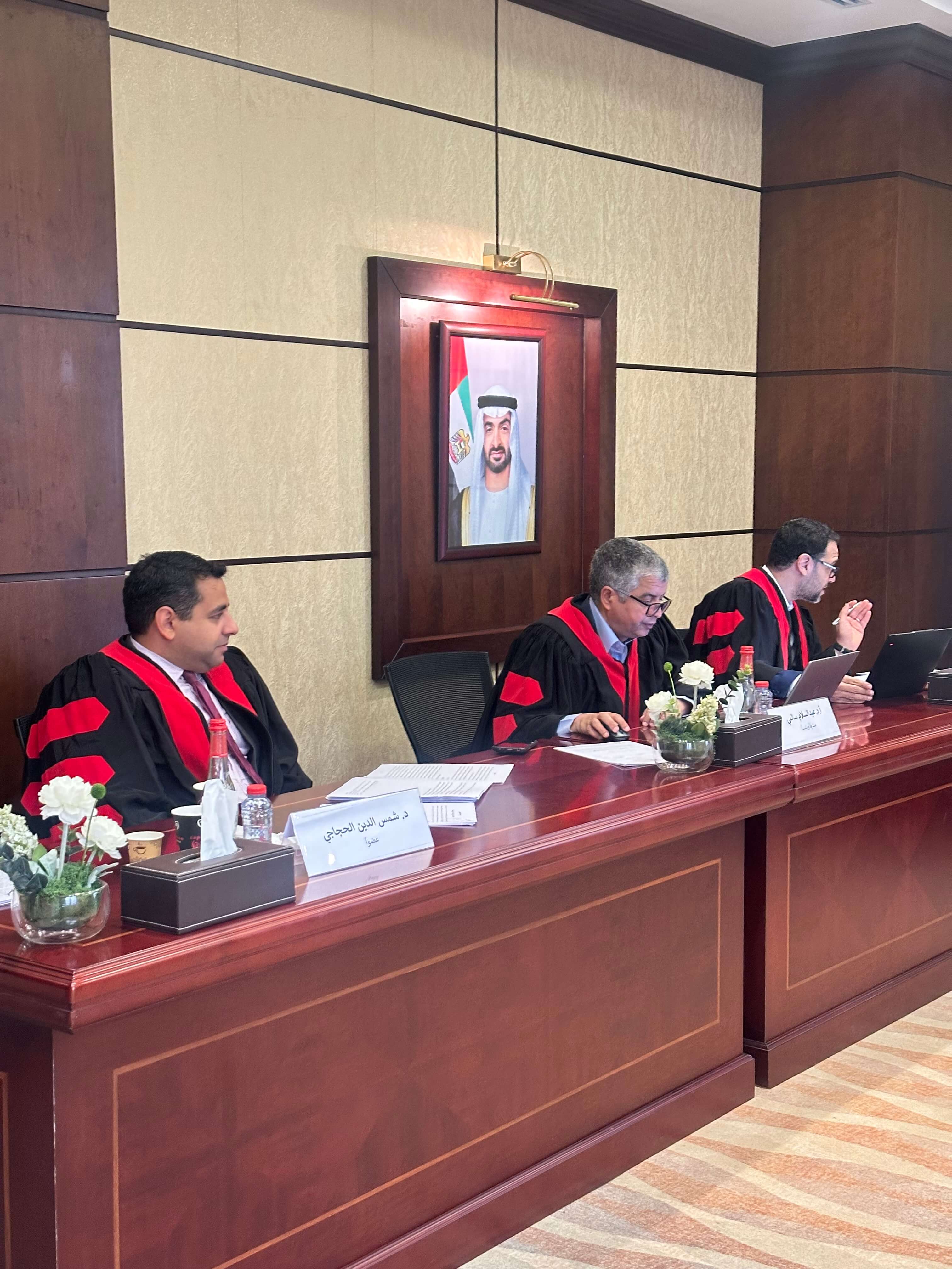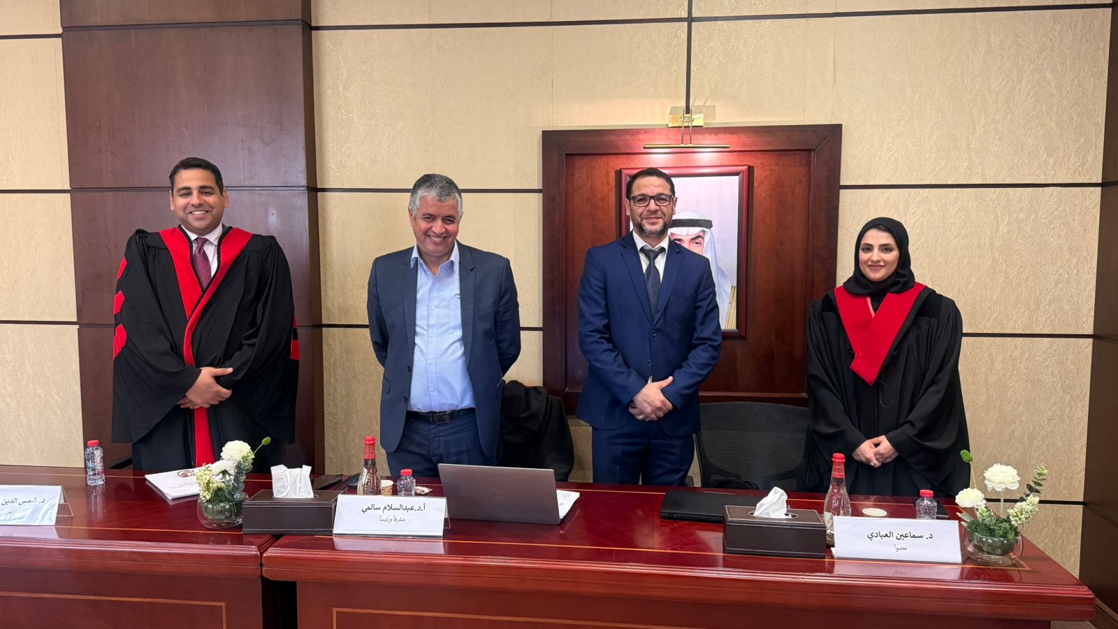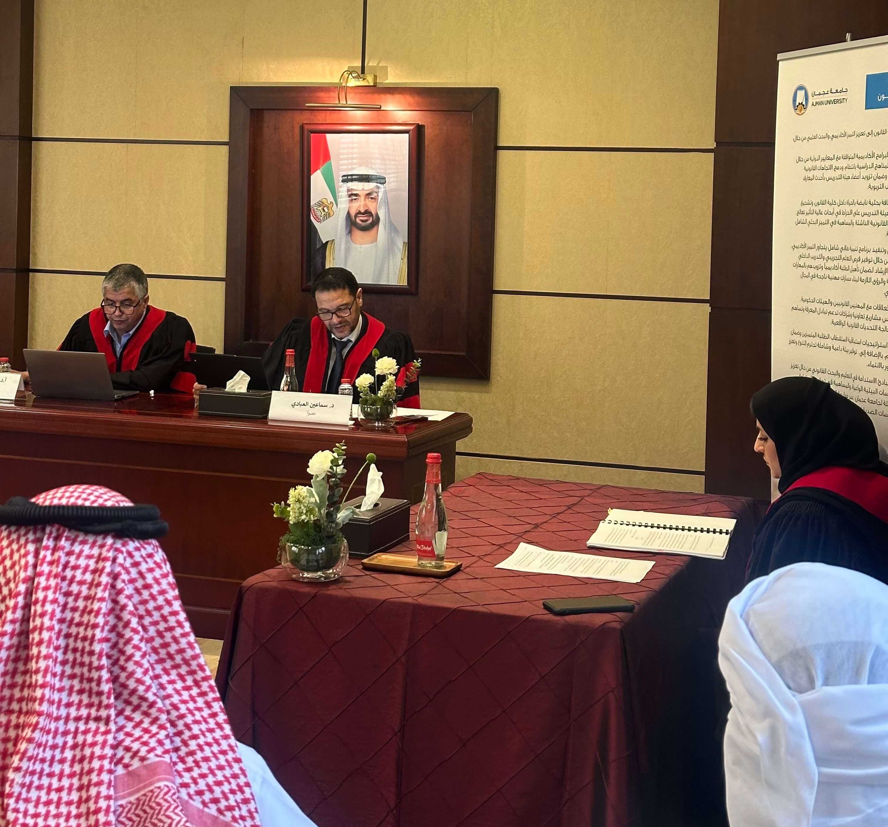 وقد جرت المناقشة يوم الجمعة الموافق 12 ديسمبر 2025، الساعة 10:00 صباحًا بمقر جامعة عجمان، أمام لجنة المناقشة المكوّنة من: