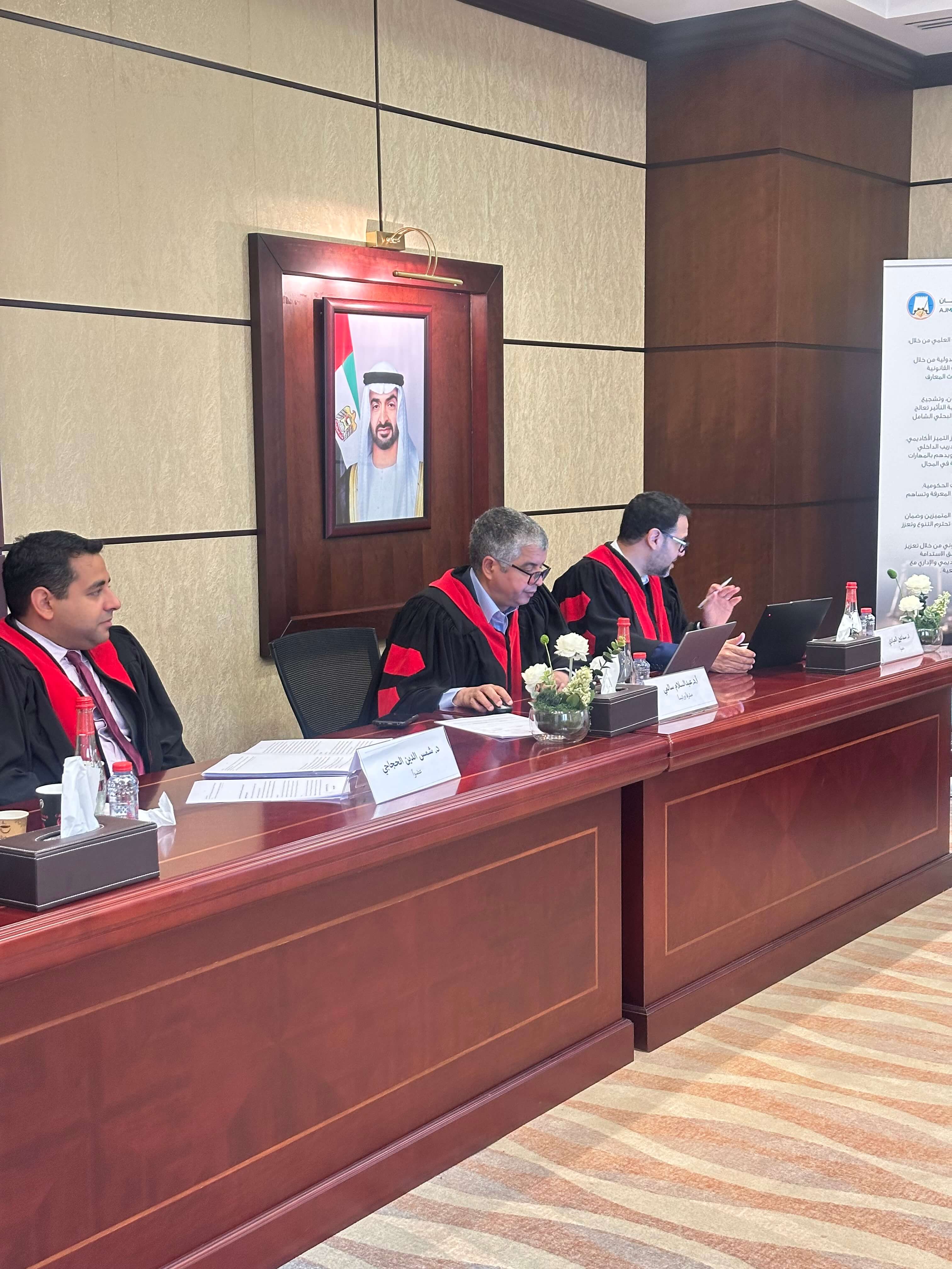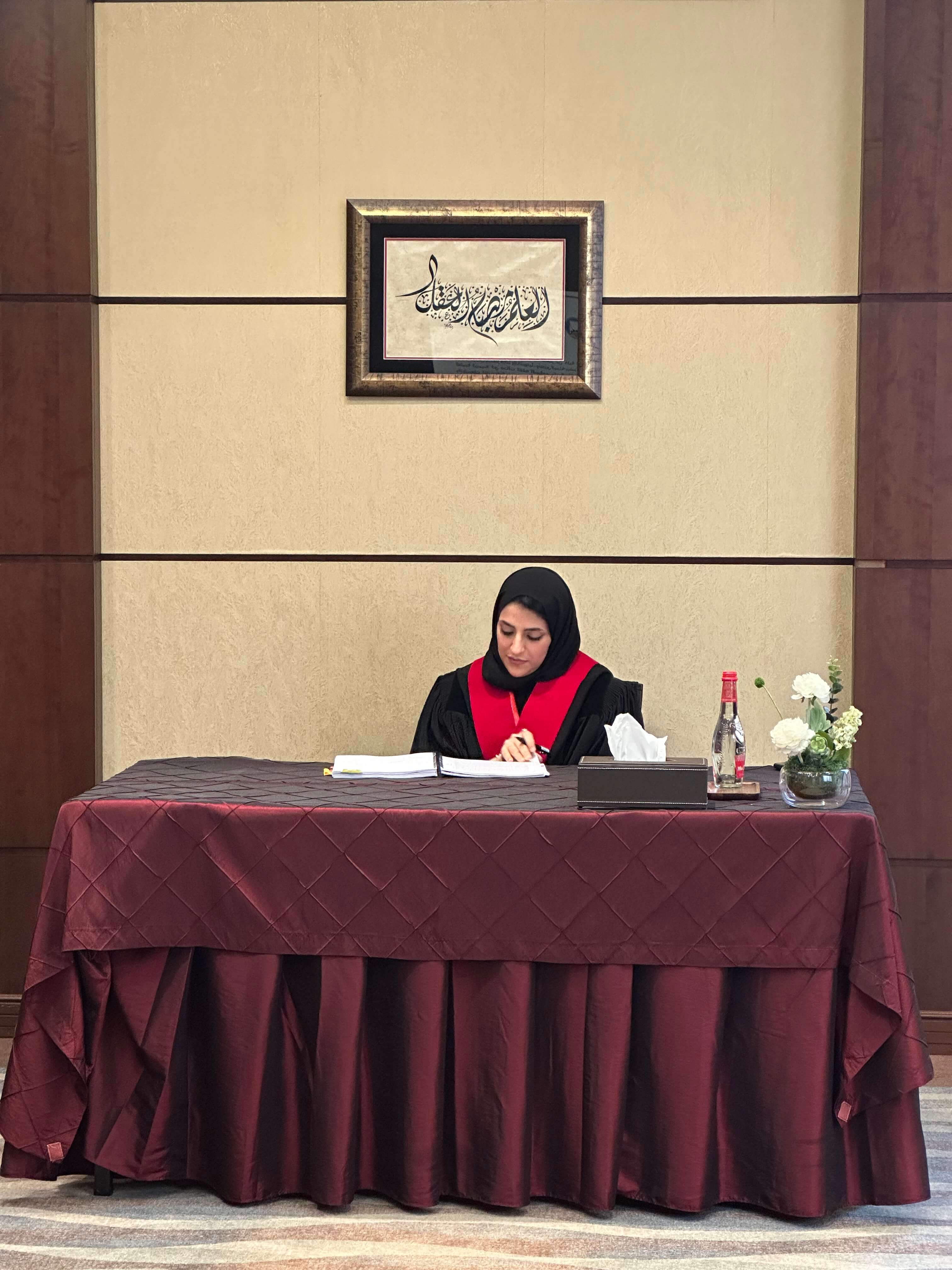 وبعد مناقشة علمية ثرية ومداولة أكاديمية معمقة، قررت اللجنة منح الطالبة هنادي عبدالله محمد آل علي درجة الماجستير في القانون العام، تقديرًا لجهودها البحثية المتميزة، وما قدمته من معالجة قانونية دقيقة لقوانين حماية البيئة من التغير المناخي في التشريعين الإماراتي والجزائري، مع إبراز الفروق والتقارب بين النظامين القانونيين وأثرها في تعزيز السياسات البيئية ومكافحة التغير المناخي.