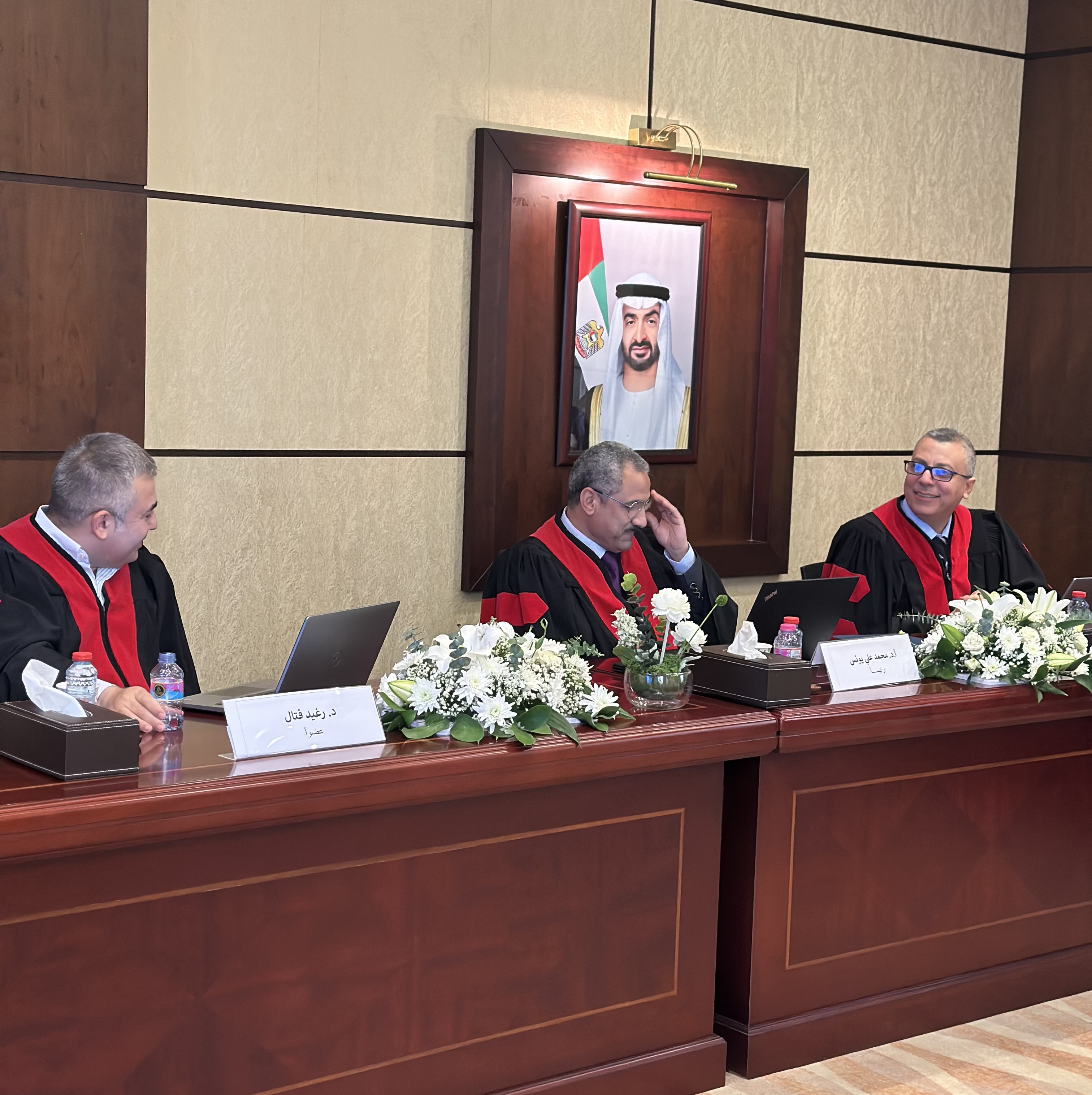 • د. نصر أبو الفتوح، أستاذ مشارك في القانون المدني بكلية القانون – جامعة عجمان (مشرفاً وعضوًا).