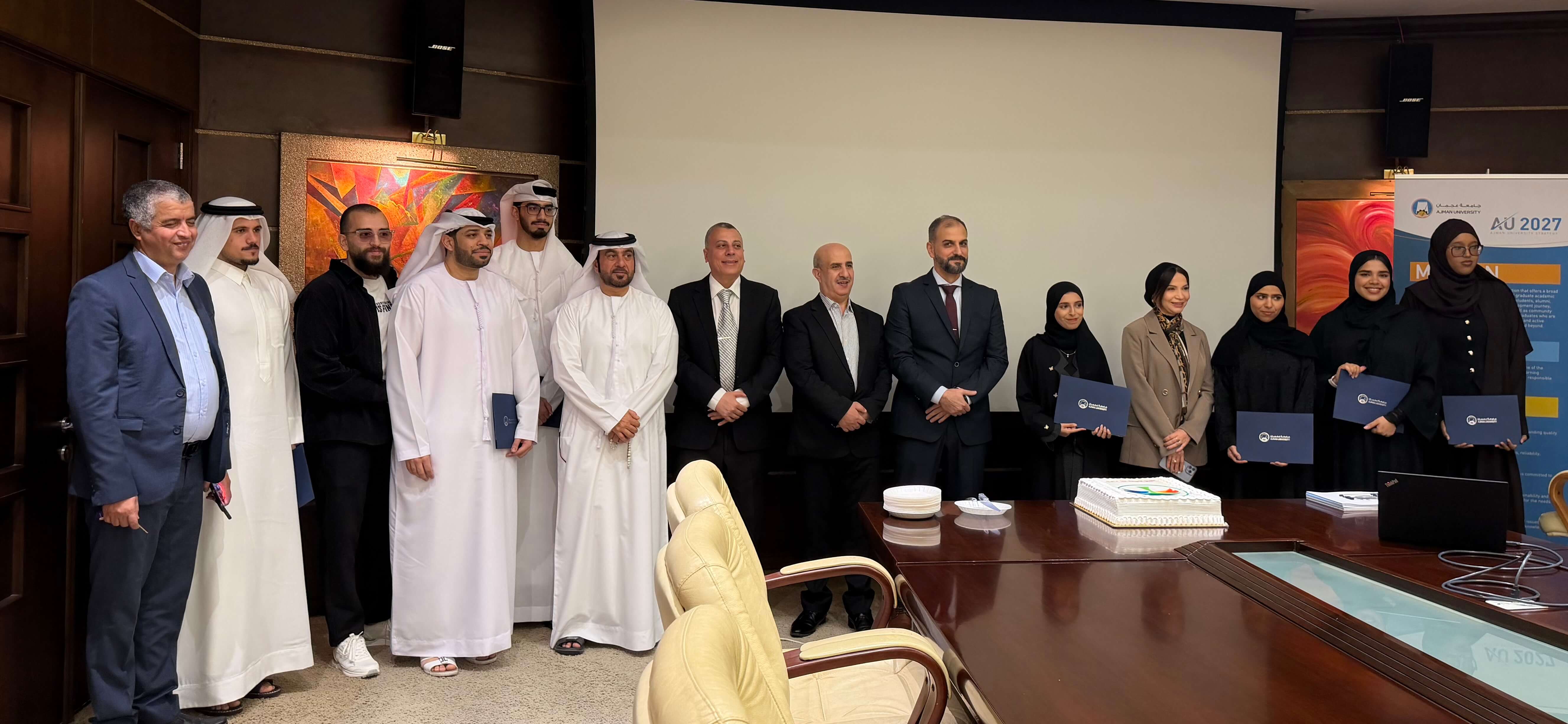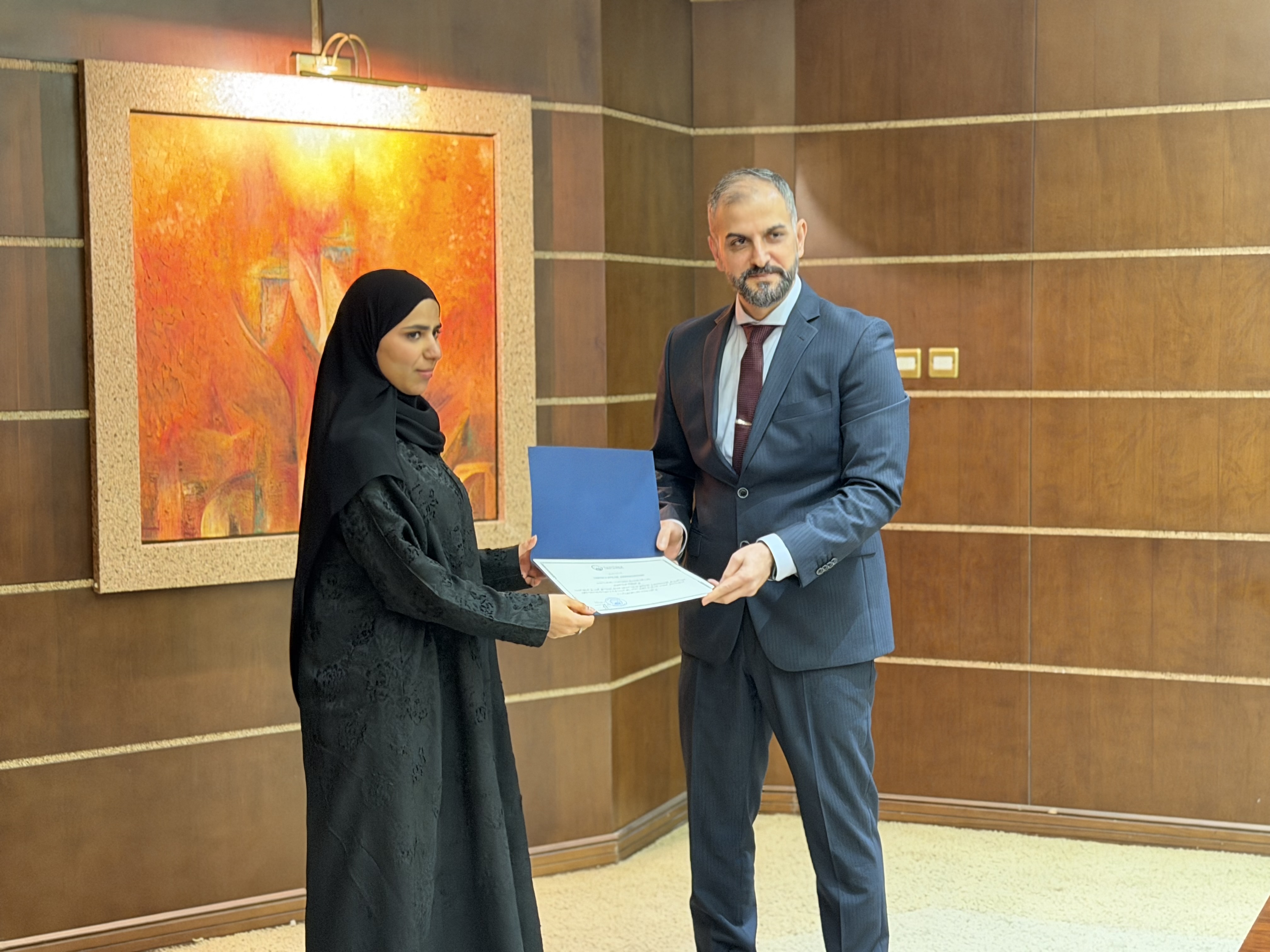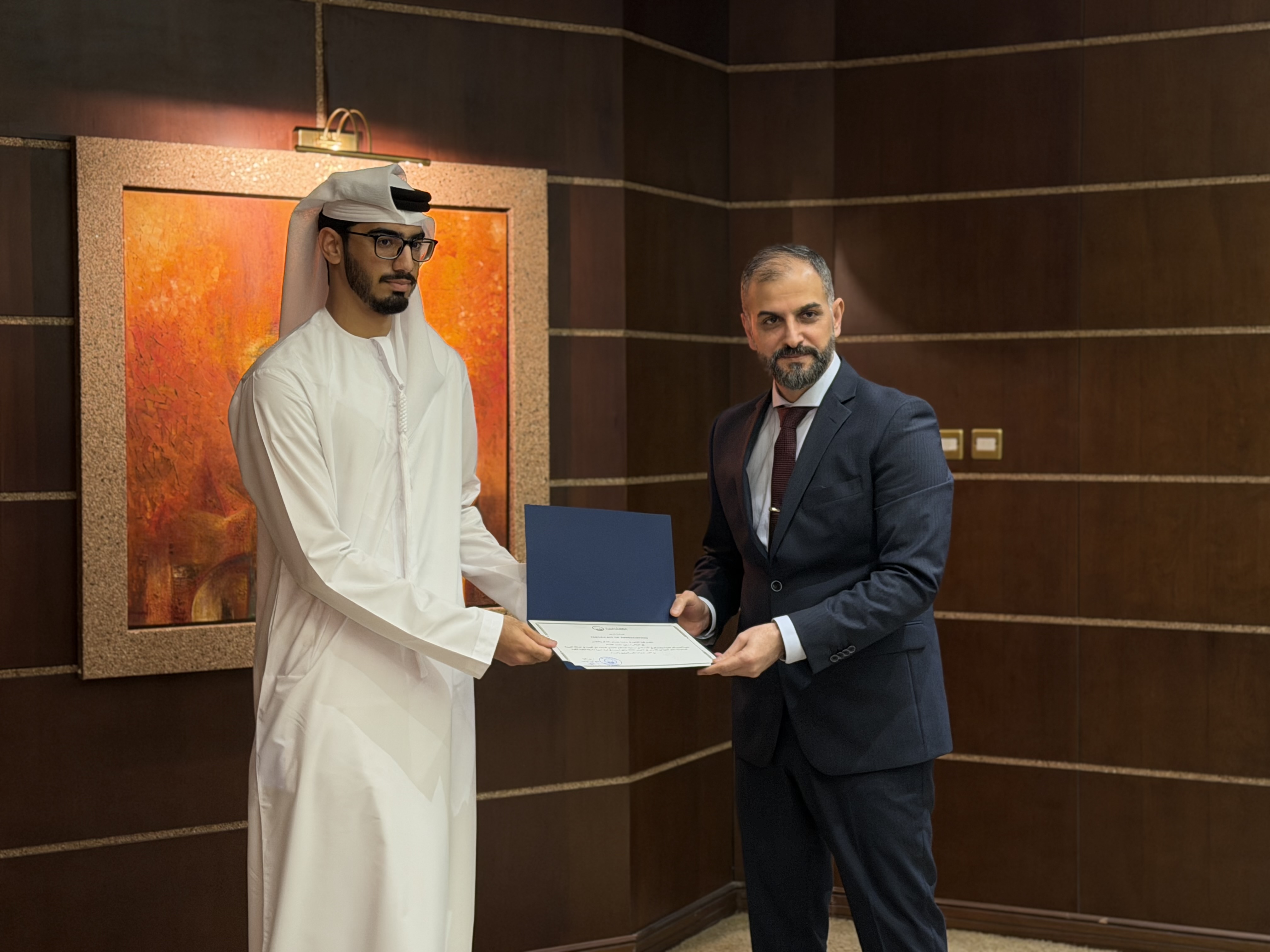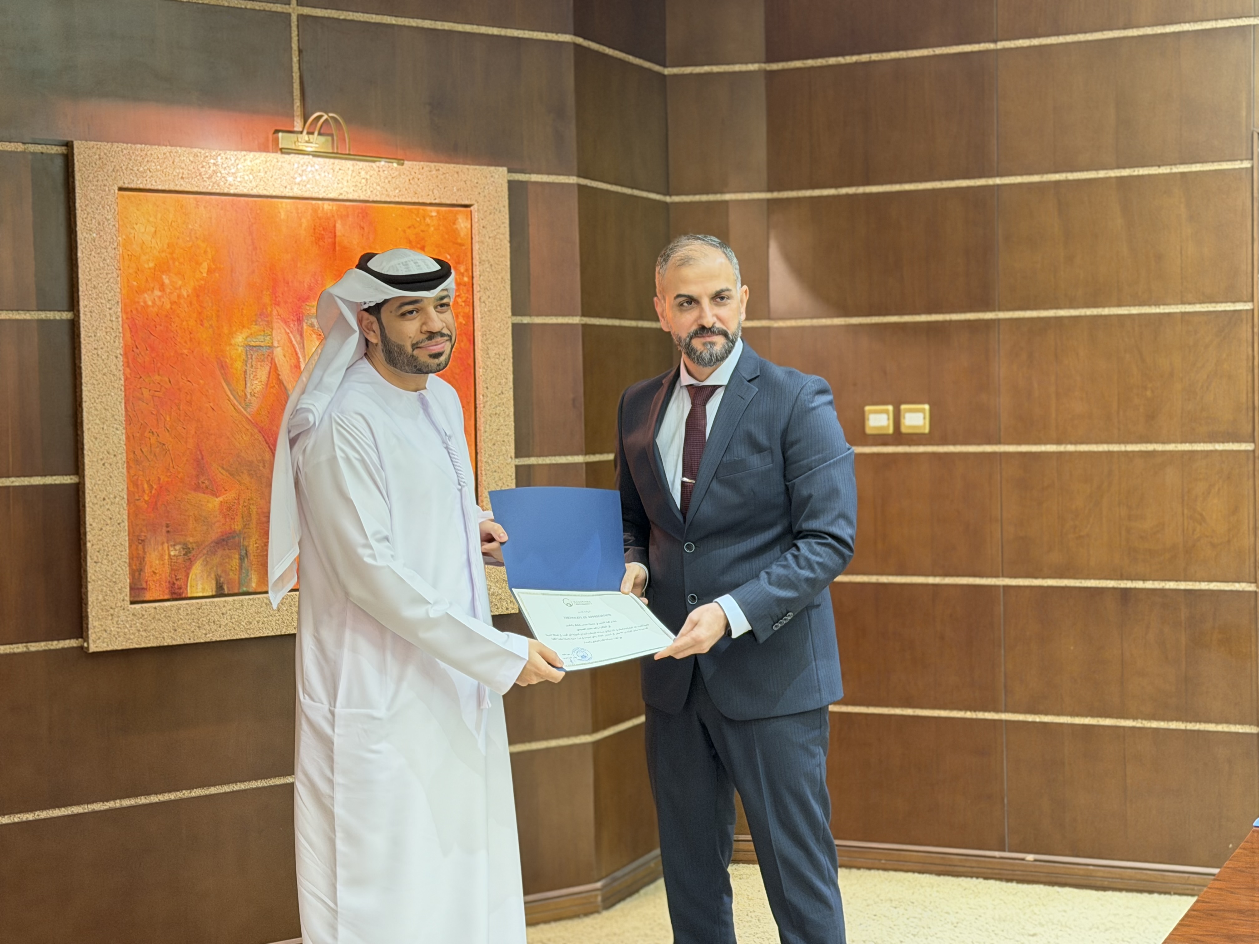في إطار حرص كلية القانون على دعم وتشجيع التميز الطلابي، كرّم سعادة عميد كلية القانون الطلبة المشاركين في منافسة التحكيم التجاري الدولية، إلى جانب أعضاء هيئة التدريس الذين أشرفوا على الفريق، وذلك عقب عودتهم من مشاركتهم في المنافسة التي أقيمت في المملكة العربية السعودية.