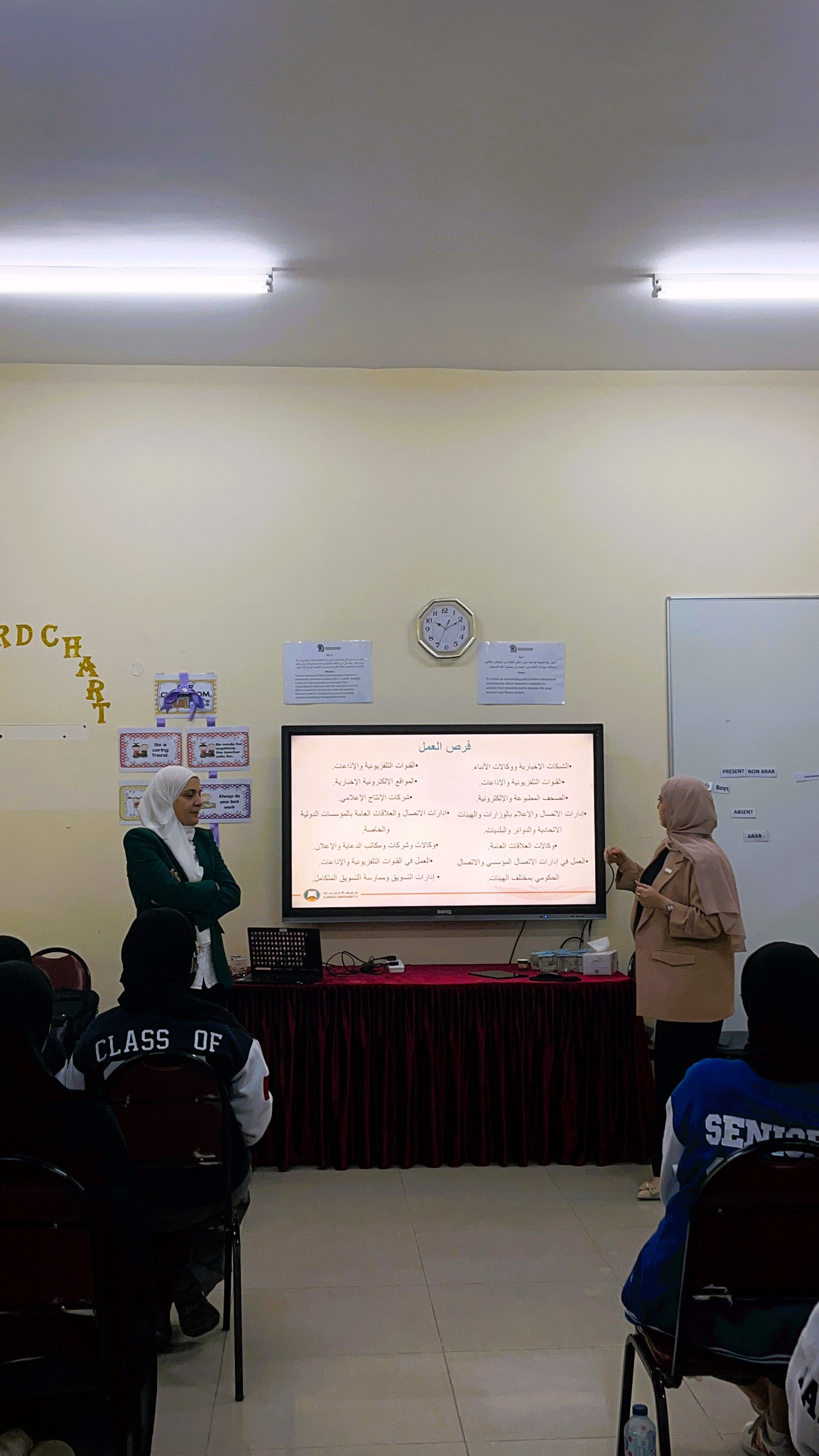 في إطار التفاعل المستمر بين الكلية والمؤسسات التعليمية، شاركت الكلية في فعالية "الحوار الوظيفي" في دعوة من قبل مدرسة تريم الأمريكية الخاصة في الشارقة، لتقديم ورشة عمل تعريفية لطلبة الصف الثاني عشر حول التخصصات المتاحة ومجالات العمل في سوق العمل.