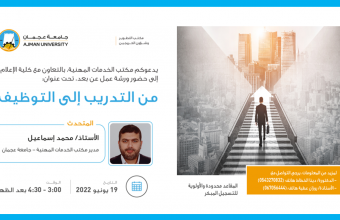 مكتب الخدمات المهنية بجامعة عجمان ينظم ورشة عمل "من التدريب إلي التوظيف" بالتعاون مع كلية الإعلام