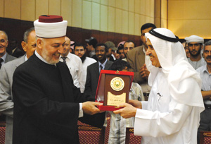 خطيب الأقصى يهدي أول مصحف ببيت المقدس لرئيس جامعة عجمان