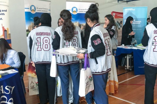 من جانب آخر، شاركت الجامعة أيضا في عدد من معارض الجامعات التي نظمتها مجموعة من المدارس الثانوية في مختلف إمارات الدولة، ومن هذه المدارس "مدرسة دبي الوطنية" و"مدرسة فيلاديلفيا الخاصة "و"مدرسة الأكاديمية الجديدة" و"مدرسة فيكتوريا الإنجليزية" و"مدرسة الوردية"، حيث قدم القائمون على جناح الجامعة معلومات متنوعة لطلاب وطالبات المرحلة الثانوية في مختلف المدارس، وشهدت هذه المعراض مشاركة عدد من الجامعات في الدولة مثل جامعة أبوظبي، والجامعة الأمريكية في دبي، وجامعة الشارقة، والجامعة الكندية.
