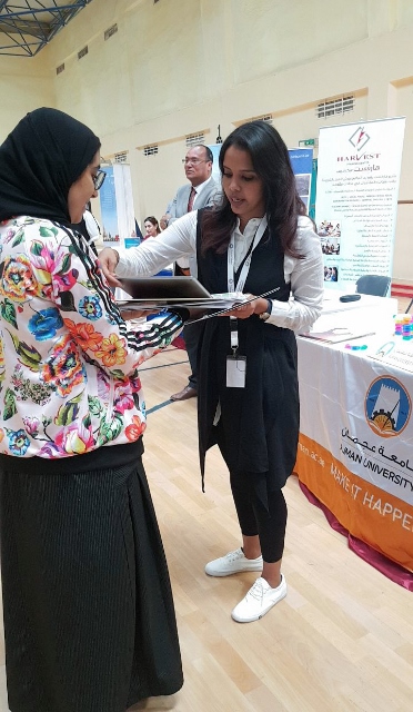 كما استعرض جناح الجامعة الخدمات المختلفة التي تقدمها الجامعة للطلبة الملتحقين بها، والبرامج الأكاديمية الجديدة التي تعتزم الجامعة طرحها، بالإضافة إلى معلومات حول كلية الطب التي ستبدأ باستقبال الطلبة الجدد في بداية العام الأكاديمي 2018-2019.
