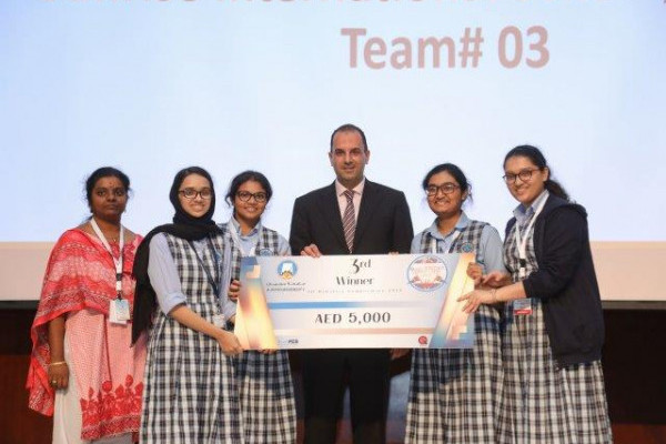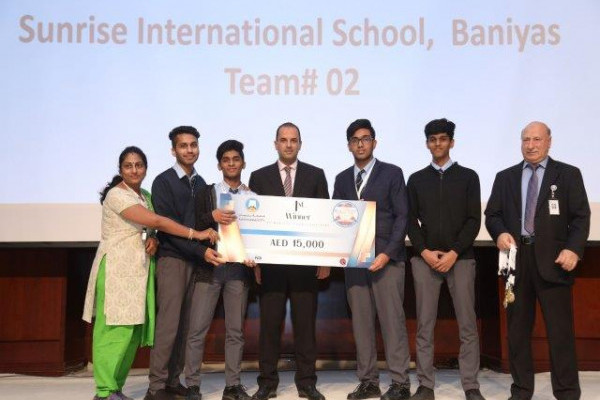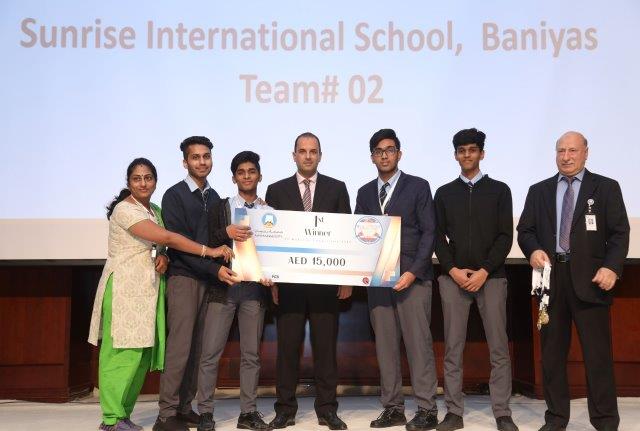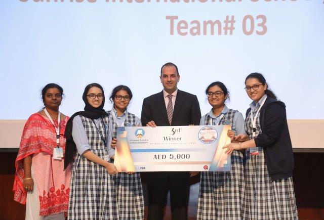 وقدم الدكتور كريم الجائزة الأولى لفريق مدرسة الشروق الإنجليزية الخاصة والتي تقدر بـ 15 ألف درهم، أما المركز الثاني فكان من نصيب فريق معهد التكنولوجيا التطبيقية مجمع طحنون بن محمد، وحصل الفريق على جائزة قدرها 10 آلاف درهم، أما المركز الثالث فكان من نصيب فريق آخر من مدرسة الشروق الانجليزية الخاصة، وحاز الفريق على مبلغ 5 آلاف درهم.