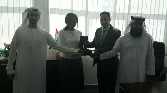 كان في استقبال الطالبات الشيخ عبد العزيز بن حمدان بن راشد النعيمي مسؤول وحدة خدمة المتعاملين، والدكتور جهاد صالح المستشار القانوني للهيئة، والذي قدم نبذة تعريفية عن الدائرة وما تحويه من أقسام مختلفة.