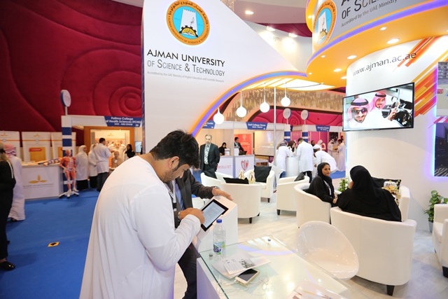 برعاية ومشاركة جامعة عجمان للعلوم والتكنولوجيا، انطلقت أمس فعاليات معرض عجمان الدولي للتعليم والتدريب " ايتكس 2016 " الذي تنظمه غرفة تجارة وصناعة عجمان تحت شعار "نحو تنمية معرفية مستدامة"، بمشاركة 45 مؤسسة تعليمية من داخل الدولة وخارجها، ويستمر المعرض حتى يوم الخميس الموافق 10 مارس في مركز الإمارات للضيافة بمنطقة الجرف في عجمان.