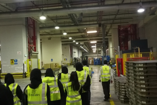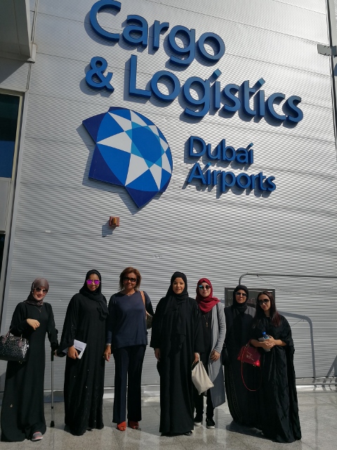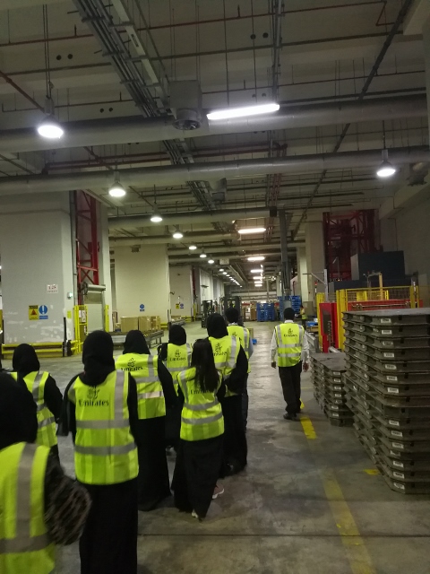 التقت الطالبات في قرية الشحن بعدد من المؤولين الذين أشادوا بدور جامعة عجمان الريادي كمؤسسة أكاديمية تساهم في التنمية المستدامة في مجتمع الإمارات، واستمعن إلى نبذة تعريفية عن قرية الشحن في مطار دبي وما تحتويه من أقسام مختلفة، وخاصة قسم العمليات الخاص بخدمة العملاء وشحن البضائع. وتعرفن على الدور الهام لطيران الإمارات في مجال شحن البضائع المتجهة لمختلف أنحاء العالم ابتداءً من دخولها قرية الشحن وحتى شحنها على متن الطائرة.