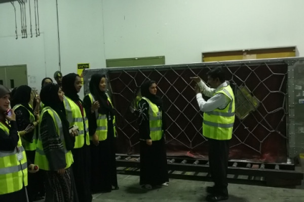 وتضمنت الزيارة جولة في أقسام قرية الشحن ومنها قسم شحن الأغذية والأدوية والحيوانات الحية، وكذلك قسم خدمة العملاء الذي تعرفت الطالبات من خلاله على كيفية استقبال أصحاب البضائع وتعريفهم بالآلية المتبعة في شحن البضائع، والوثائق المطلوبة منهم. ثم انتقلت الطالبات إلى مبنى الحاويات للتعرف على أنواعها المختلفة وكيفية تجميع البضائع فيها تمهيداً لشحنها على متن الطائرة.