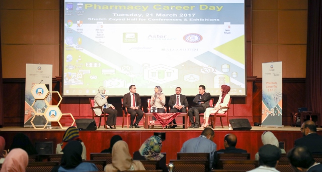 نظمت كلية الصيدلة والعلوم الصحية بالتعاون مع مكتب التدريب والتوظيف في عمادة شؤون الطلبة بجامعة عجمان يوما مهنيا لطلبة كلية الصيدلة والعلوم الصحية أقيم في مركز الشيخ زايد للمؤتمرات والمعارض بمشاركة مجموعة متميزة من شركات الأدوية والصيدليات في الدولة، وبحضور لفيف من الخبراء في المجال.