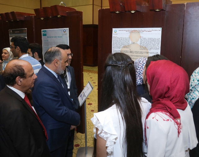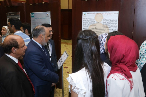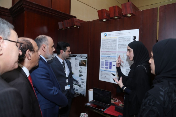 حيث افتتح الدكتور خالد الصالح، نائب مدير الجامعة للشؤون الأكاديمية، معرض للملصقات العلمية Research Posters التي أعدها الطلبة، واستمع خلال جولته في المعرض شرحا حول البحوث التي قدموها، وناقشهم بأهم ما ورد بها من أفكار ومقترحات. واستعرض الطلبة الذي نجحوا في اجتياز كافة مراحل التحكيم العلمي ما تناولته بحوثهم العلمية من موضوعات ومشكلات، وما اقترحوه من أفكار وتطبيقات عملية يمكن الاستفادة منها على أرض الواقع.