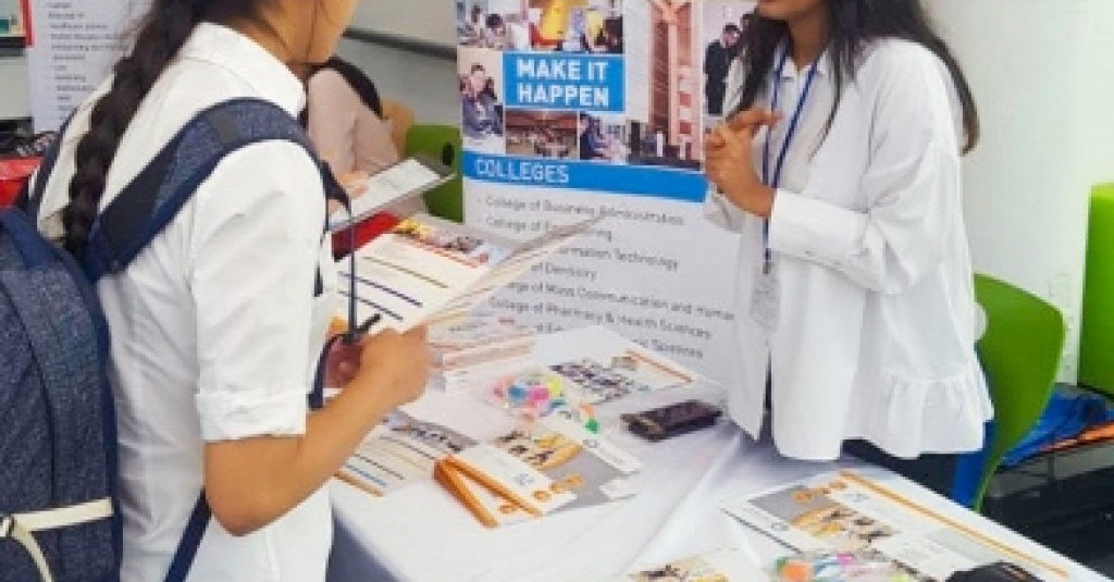 وقد قدّم القائمون على جناح الجامعة معلومات متنوعة لطلاب وطالبات المرحلة الثانوية في مختلف المدارس، وشهدت هذه المعراض مشاركة عدد من الجامعات من داخل الدولة خارجها. ومنها جامعة أبو ظبي، والجامعة الأمريكية في دبي، والجامعة الكندية وجامعة أميتي، وجامعة دبي للتصميم والابتكار، وجامعة السيبورن الفرنسية بأبوظبي.
