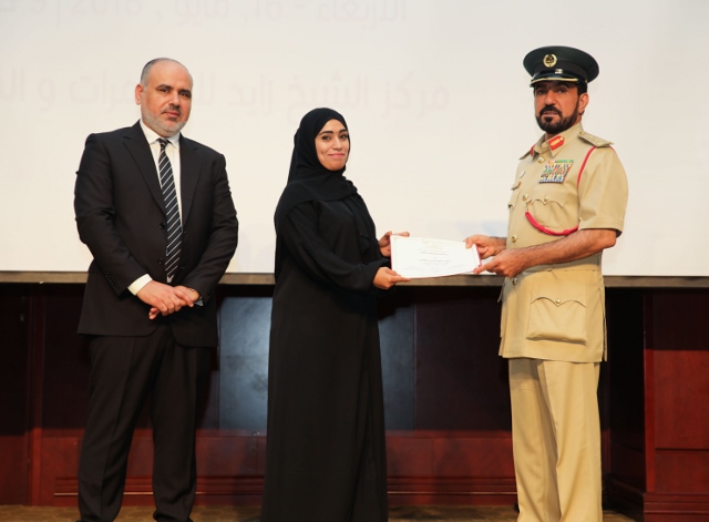 وقد شهد التكريم كل من اللواء عبد القدوس العبيدلي، مساعد القائد العام لشؤون الجودة والتميز في شرطة دبي، والدكتور خالد الصالح، نائب مدير الجامعة للشؤون الأكاديمية.