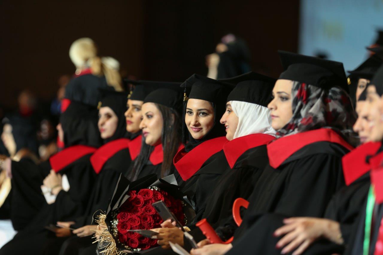 وأشارت إلى أن اليوم هو مناسبة للاحتفاء بقيمة ومكانة العلم والتعليم والابداع والابتكار والتميز والعمل الجاد والجهد الدؤوب ودور كل ذلك في واقع دولتنا ومستقبلها.. فأنتن صفحة جديدة في كتاب إنجازات الوطن، ومن باب اعتزازنا أن نكون هنا في جامعة عجمان، وهي واحدة من صروحنا الاكاديمية والتعليمية التي يقوم عليها مجد وتطور دولتنا، بما تمتلك من حضور بارز في الأوساط العلمية والأكاديمية، وبما تقوم به من جهد مجتمعي كمركز مرموق للإشعاع المعرفي والحضاري، وهي مناسبة أيضا لنقول شكرا لأعضاء هيئة التدريس الكرام وكل حملة مشاعل العلم في كل أرجاء وطننا وصروحنا العلمية والأكاديمية، لما يبذلون من جهد كبير في سبيل إعداد أجيال متسلحة بالعلم تمتلك أدوات التنافسية التي تحقق للوطن طموحه وأحلامه، والشكر لكل أم وأب وأخت وأخ قدموا الدعم والمساندة ووفروا الأجواء والسبل كي تصلوا إلى هذا اليوم. وهنأت الخريجات وذويهن بما اكتسبنه من العلم وما حققنه من نجاح وتفوق.
