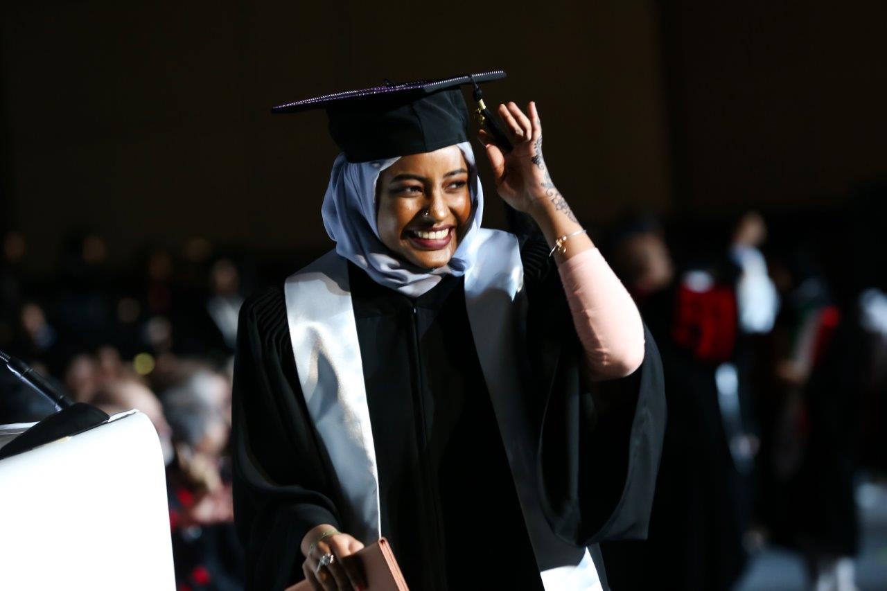 وتحدثت الخريجة ميعاد علي من كلية الاعلام في كلمة لخريجات الفوج الثاني من دفعة عام التسامح 2019، توجهت فيها بالشكر والتقدير إلى قرينة حاكم عجمان لتشريفها حفل تخريج الفوج الثاني من الدفعة الثامنة والعشرين "دفعة عام التسامح"، وإلى الأساتذة الأجلاء لما قدموه من علم إذ كانوا نبراسا يحتذى به في الحياة العلمية والمعرفية، وإلى الأمهات والآباء الأحبة، بكل كلمات المحبة والثناء تقديرا لوجودهم ولدورهم الأهم في كل هذه المسيرة العلمية، لهم جميعا أسمى آيات العرفان والامتنان.