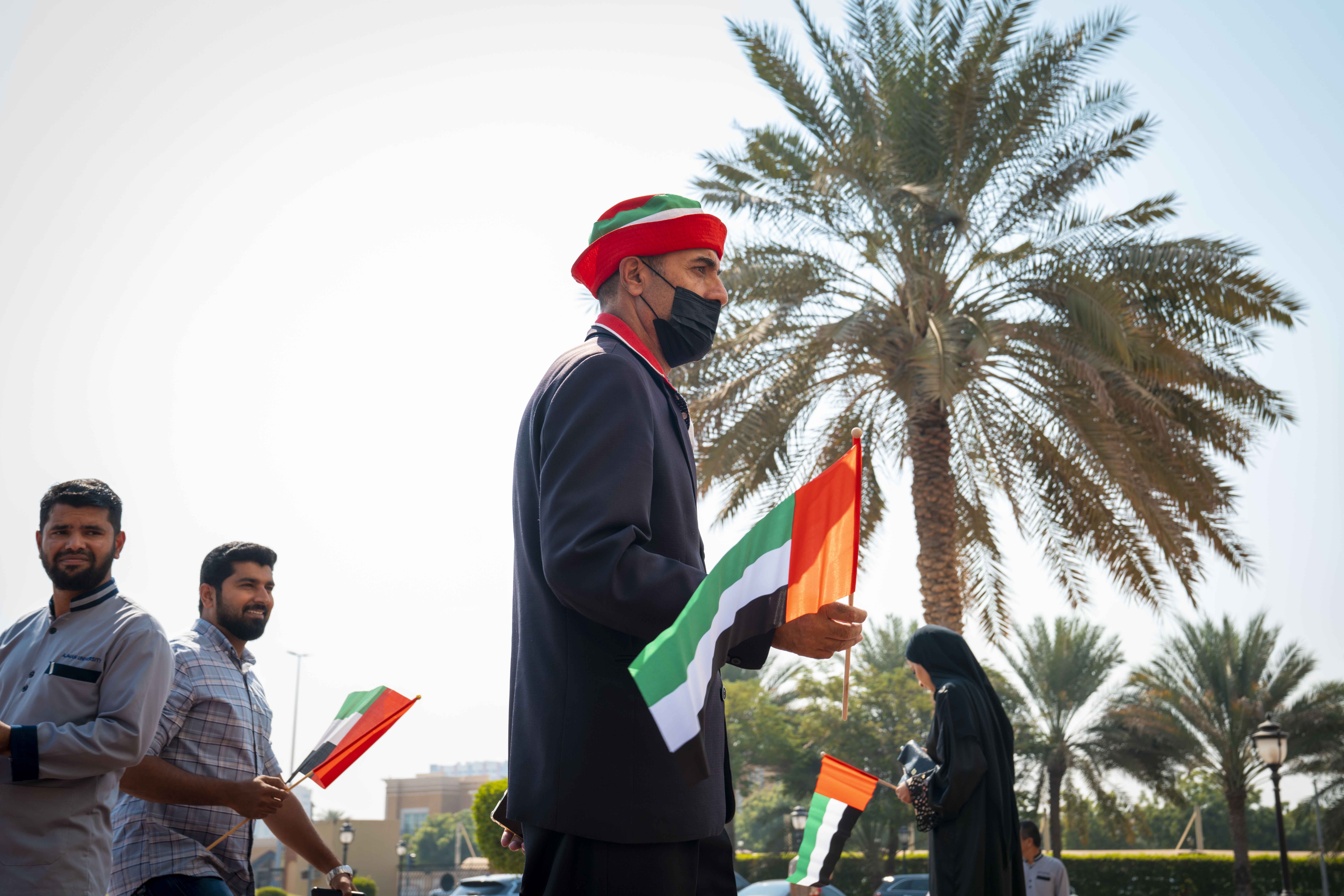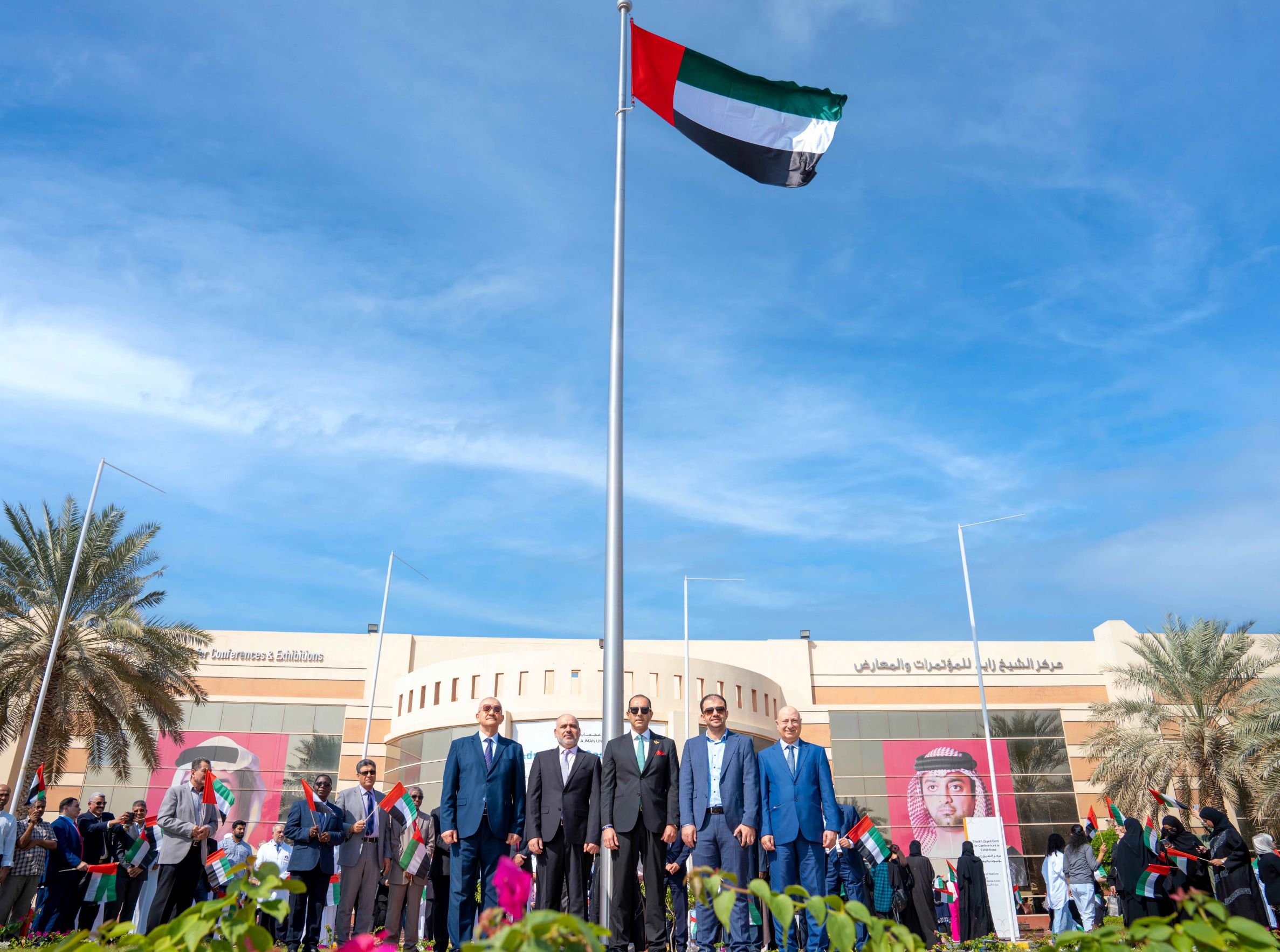 ورفع علم الدولة على أنغام النشيد الوطني أمام قاعة الشيخ زايد للمؤتمرات والمعرض في الحرم الجامعي، وسط أجواء فرح ومشاعر من العزة وصدق الانتماء تجاه هذا الوطن المعطاء الذي ضم مختلف الجنسيات وأولى الأولوية القصوى لقيم احترام حقوق الإنسان.