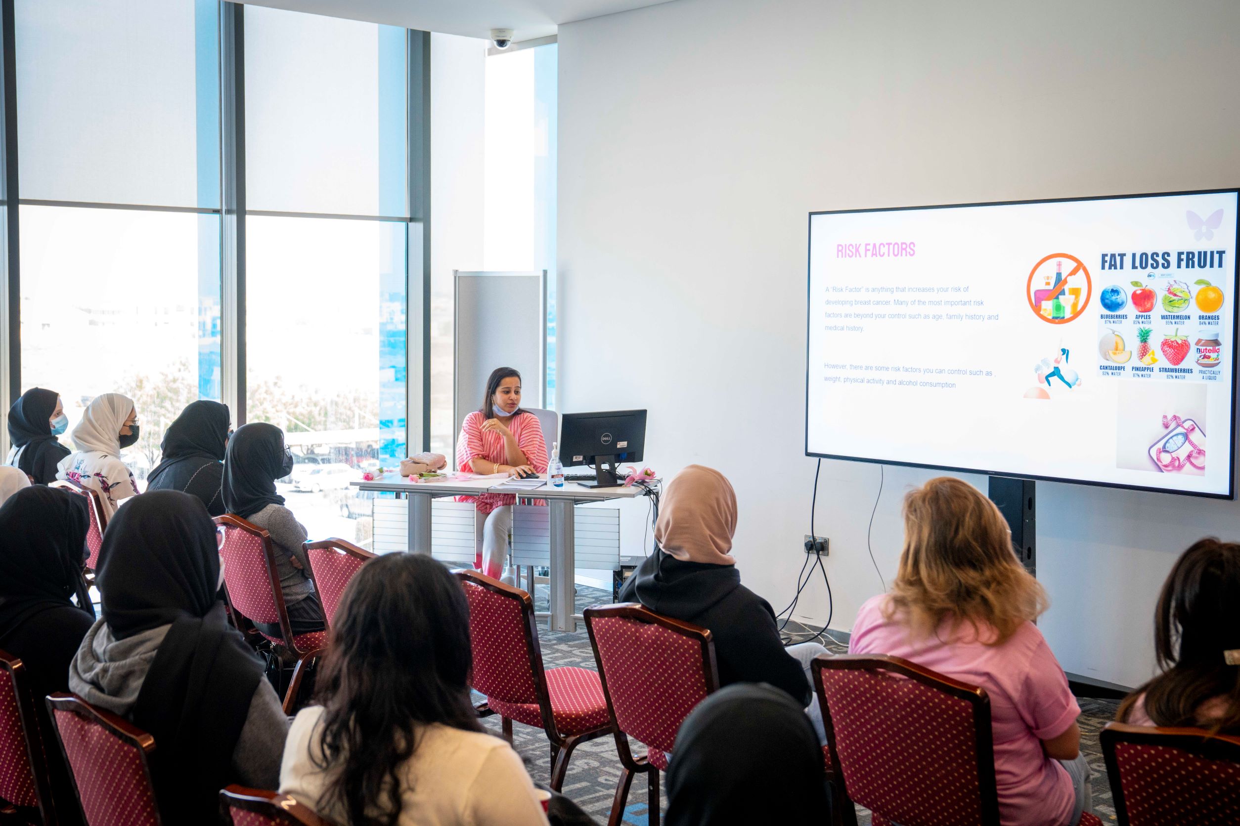 وقامت الدكتورة غوبتا بتسليط الضوء على أهمية الفحص المنتظم، وشرح كيفية إجراء الفحص الذاتي للثدي. وقدمت معلومات قيمة عن أهمية التصوير الإشعاعي للثدي، ودور الفحوصات المبكرة في تسريع استجابة المريضات للعلاج في الحالات التي يتم فيها اكتشاف المرض في مراحله الأولى.