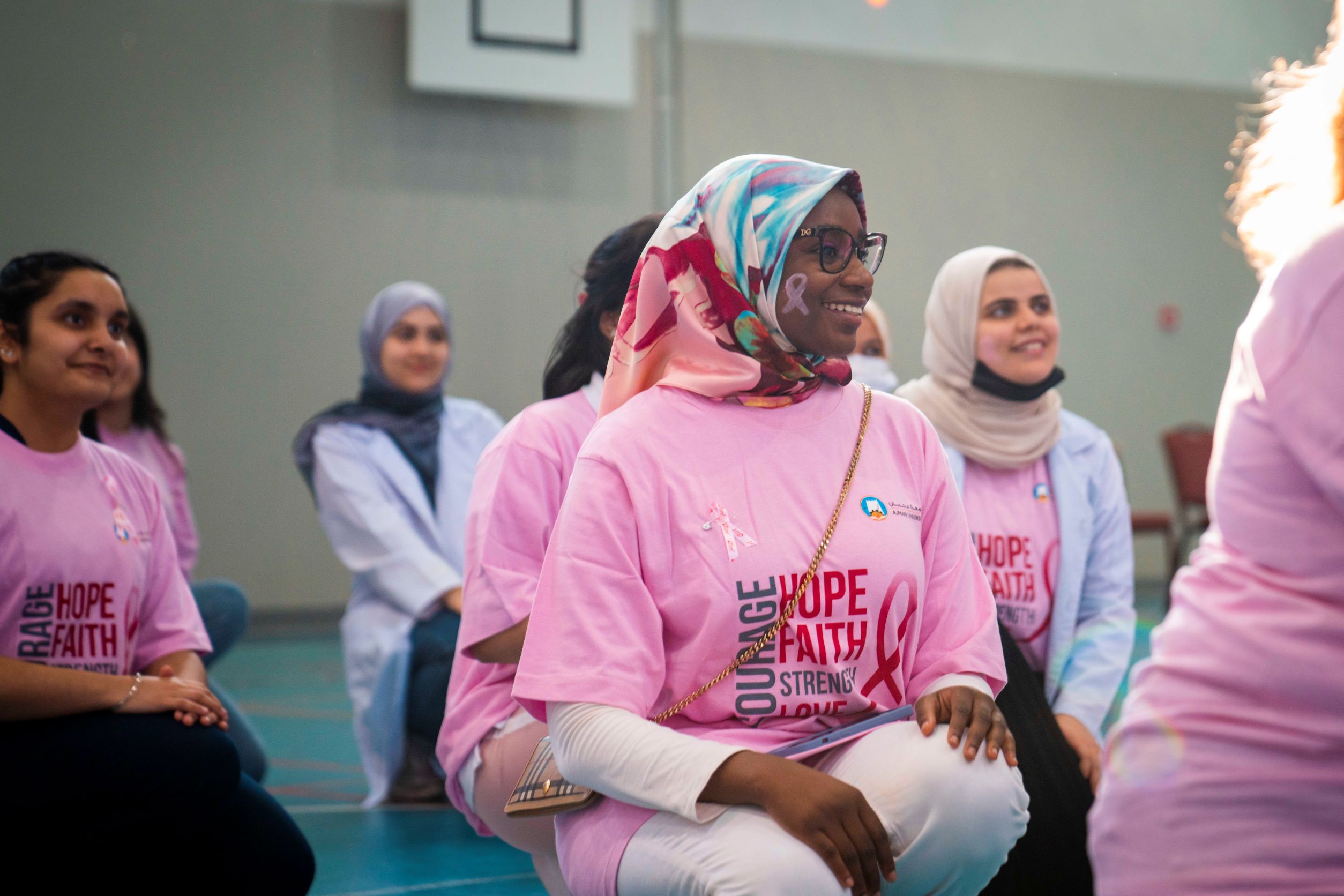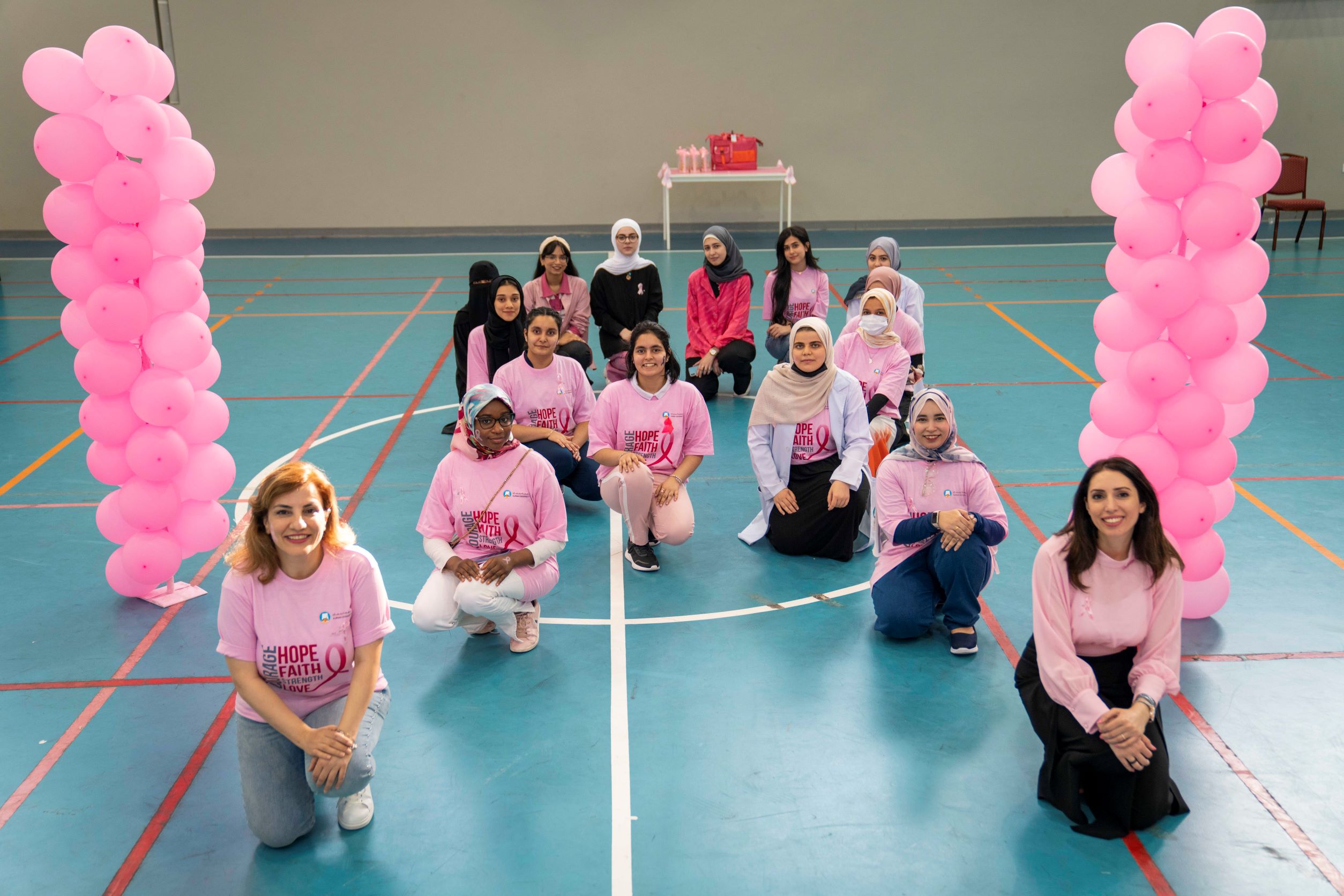 كما شاركت وحدة النشاط الرياضي بتقديم عدد من الأنشطة الرياضية التي تضمنت جلسة إحماء للتأكيد على أهمية التمارين المنتظمة وأثرها في مكافحة العديد من الأمراض. وشمل الحدث عدة مسابقات وأنشطة ترفيهية تضمنت تحديات وجوائز، بهدف رفع مستوى الوعي حول سرطان الثدي.