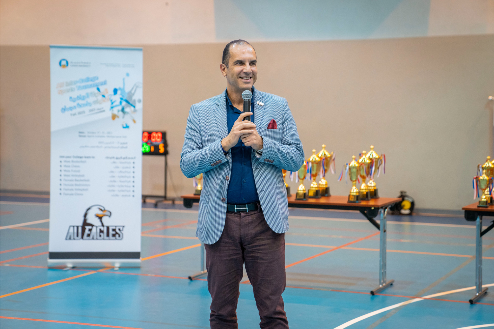 كرم الدكتور كريم الصغير، مدير جامعة عجمان، الفائزين في البطولة الرياضية، خلال حفل التكريم الذي أقيم بالمجمع الرياضي بالجامعة. وحضر حفل التكريم الدكتورة نهلة القاسمي، عميد شؤون الطلبة، والدكتور محمد هلال، مدير مكتب الحياة الطلابية، والأستاذة أسماء الشامسي، مدير وحدة النشاط الرياضي.