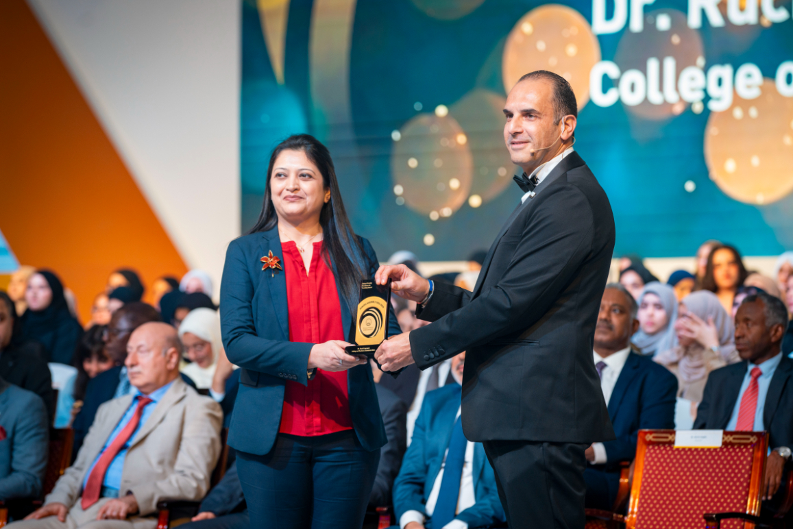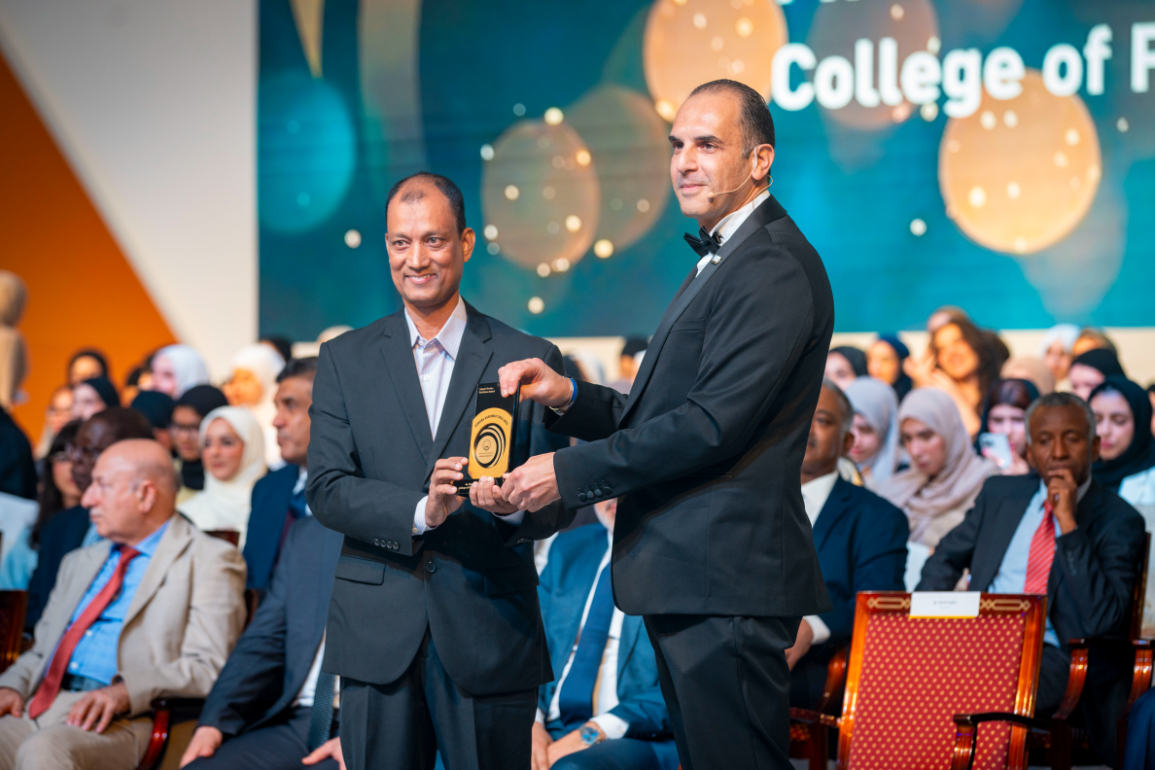 وفي هذا الإطار، كرّم الدكتور كريم الصغير، مدير الجامعة، 26 شخصية متميزة من الهيئتين التدريسية والإدارية، منهم أعضاء مدرجون في قائمة جامعة ستانفورد لأفضل 2% من علماء العالم لعام 2023، مما يبرز التزام الجامعة بالتميز البحثي والأكاديمي. كما تم تكريم عائشة سالم الكعبي، خريجة دفعة عام 2018 من كلية الإعلام، بجائزة التميز في المشاركة للخريجين، وشركة إفكو بجائزة أفضل شريك مؤسسي استراتيجي، ويوسف القناتي من مؤسسة العجماني الخيرية بجائزة أفضل شريك فردي استراتيجي. أما دائرة الأراضي والتنظيم العقاري ومجموعة ليدر هيلث كير، فقد تم تكريمهما كأفضل جهات توظيف في القطاعين الحكومي والخاص، ما يعكس التزام الجامعة بتعزيز الشراكات الاستراتيجية وتقديرها لدعم هذه الجهات لمسيرة طلبتها وخريجيها.