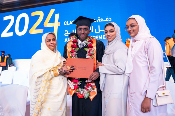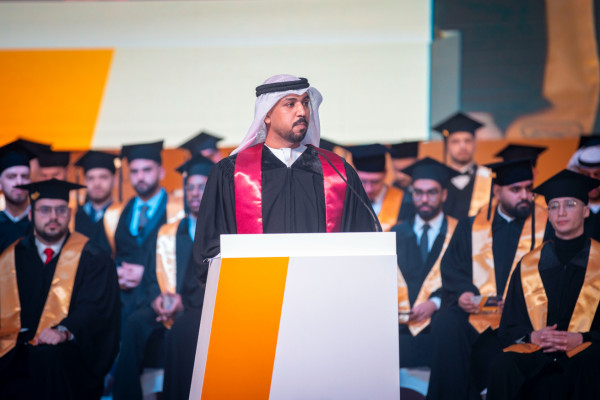 من جانبه ألقى الخرّيج علي إسحاق حديد كلمة الخريجين، قال فيها: " إنهُ لَمنْ دواعي السرور أن ننال اليوم شرف اللقاء بصاحب السمو حاكم عجمان، فرعاية سموِّه الكريمة لهَذا الحفلِ تجسِّد الاهتمام الكبير الذي يحظَى به الطلبة في دولةِ الإمارات من قبل قيادتنا الحكيمة، وعلى رأسِها صاحب السمو الشيخ محمد بن زايد آل نهيان رئيس الدولة "حفظه الله"، وإخوانه أصحاب السمو حكام الإمارات".