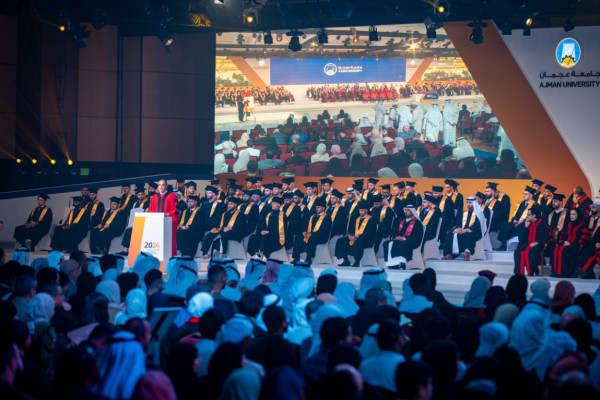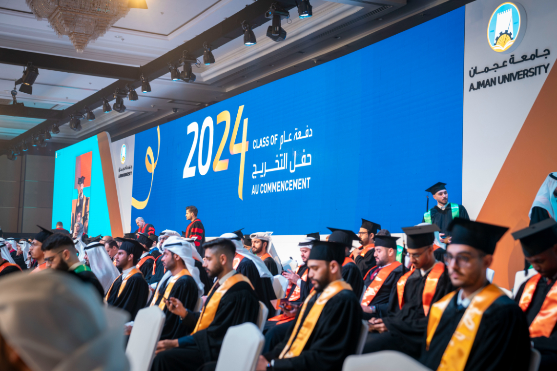 شهد صاحب السمو الشيخ حميد بن راشد النعيمي عضو المجلس الأعلى حاكم عجمان وسمو الشيخ عمار بن حميد النعيمي ولي عهد عجمان، رئيس المجلس التنفيذي، رئيس مجلس أمناء جامعة عجمان ومعالي الشيخ نهيان بن مبارك آل نهيان وزير التسامح والتعايش، حفل تخريج "دفعة عام 2024" من طلبة جامعة عجمان الذين تجاوز عددهم 200 خريجاً والذي أقيم صباح اليوم في مركز الشيخ زايد للمؤتمرات والمعارض في الحرم الجامعي وسط أجواء عمّتها السعادة والفخر بفرحة النجاح والتخريج.