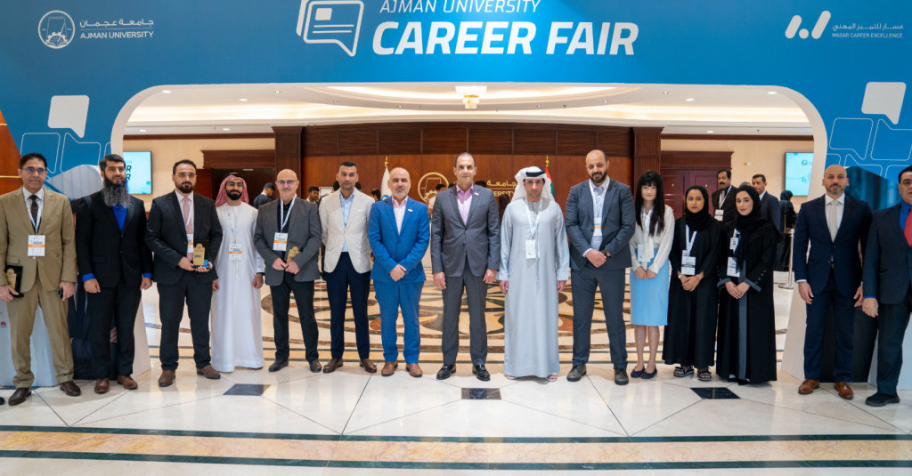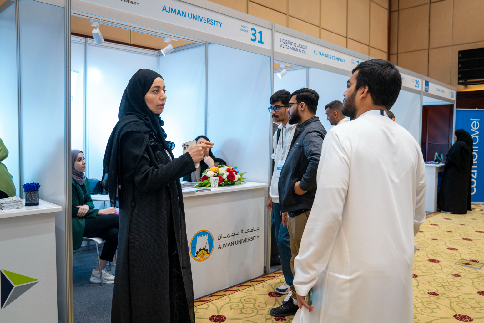نظمت جامعة عجمان معرض التوظيف والتدريب 2024 بــإدارة وتنظيم مسار للتميز المهني، مستضيفةً أكثر من 70 جهة حكومية وخاصة بهدف عرض أحدث الاتجاهات في مجال التوظيف وفرص العمل المستقبلية، بالإضافة إلى إتاحة الفرصة أمام الجهات المشاركة للتعرف على إمكانات الطلبة الباحثين عن العمل واستقطاب الكفاءات في مختلف التخصصات.