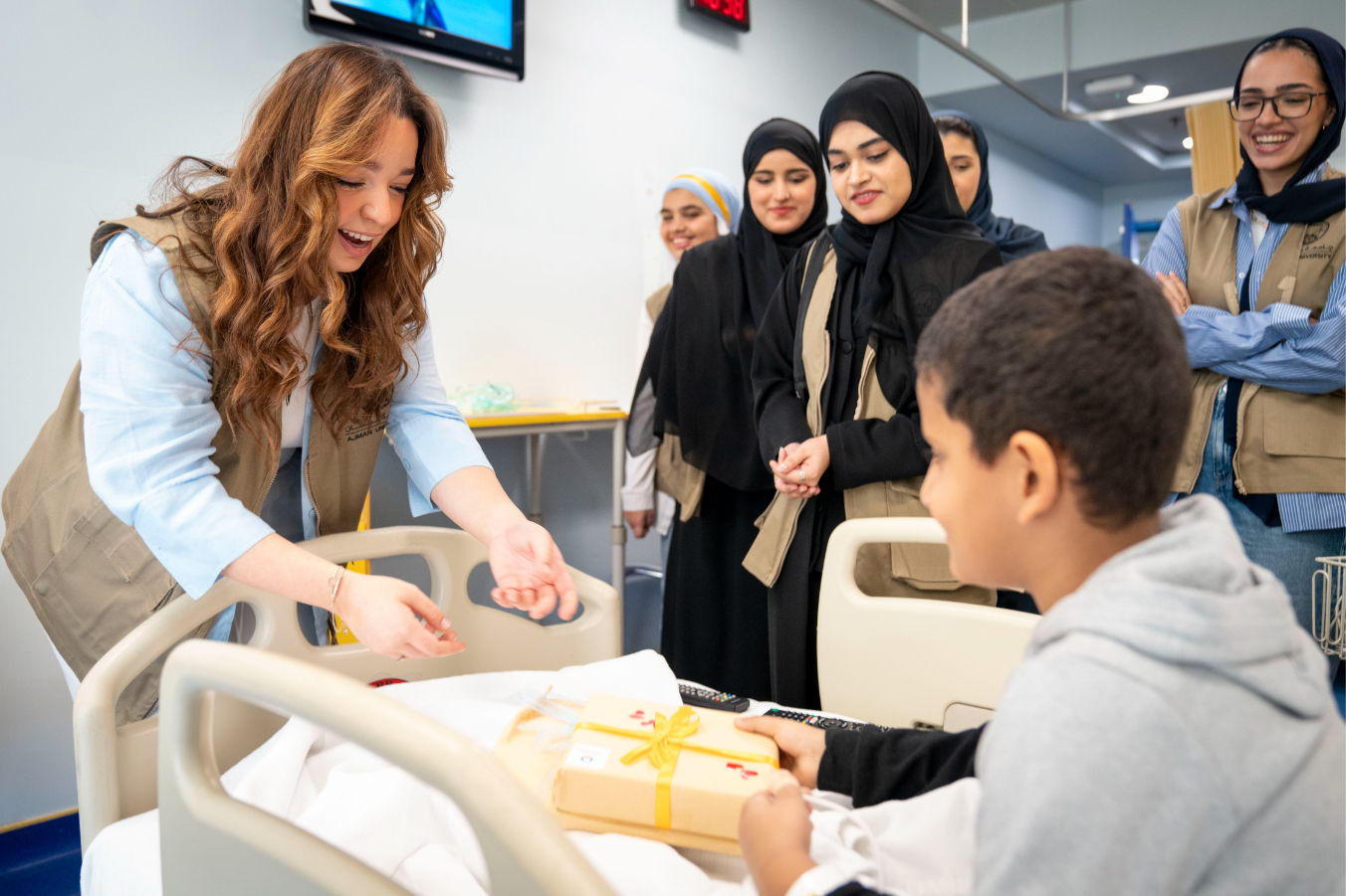 نظم مكتب التواصل المجتمعي بجامعة عجمان زيارة إلى مستشفى الشيخ خليفة للنساء والأطفال بعجمان بهدف إدخال البهجة والسرور على قلوب الأطفال وذويهم. خلال الزيارة، قام الفريق بتوزيع الهدايا والألعاب على الأطفال بهدف تحسين حالتهم النفسية وتشجيعهم على مواصلة رحلة العلاج. تعد هذه الزيارة جزءًا من الخطة الاستراتيجية للمكتب، التي تهدف إلى تعزيز التواصل مع المؤسسات ذات الصلة بالقضايا الإنسانية والاجتماعية.