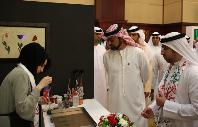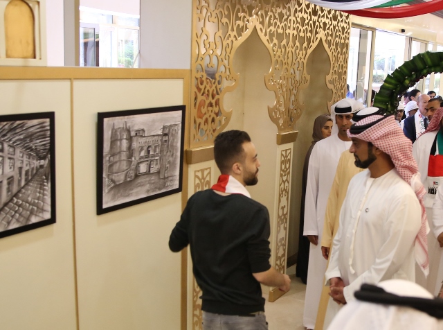 قص سموه شريط الحفل إيذانا ببدء احتفالات الجامعة باليوم الوطني، بحضور عمداء الكليات ومدراء الإدارات وحشد كبير من الأساتذة والموظفين وطلاب وطالبات الجامعة. حيث بدأت الجولة في جناح مركز الفنون الجميلة، حيث اطلع سموه على اللوحات الفنية التي أبدعها طلاب وطالبات الجامعة، ثم اطلع سموه على أجنحة معرض الكليات في مركز الشيخ زايد للمعارض والمؤتمرات.