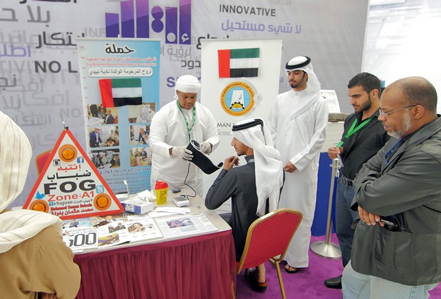 كما اشتملت مشاركة الجامعة على تقديم خدمات مجتمعية تطوعية للتوعية الصحية، حيث قام المهندس بلولة بإجراء فحوصات طبية لقياس نسبة السكر في الدم، ولقياس ضغط الدم ونسبة الشحوم في الجسم، كما قدم استشارات ونصائح طبية لكافة زوار جناح جامعة عجمان في المعرض المصاحب للملتقى. واشتملت الحملة الصحية التوعوية على الكشف المبكر عن الرجفان الأذيني للقلب لتفادي الجلطات، وقد لاقت هذه الخدمات إقبالا كبيرا من قبل حضور وزوار الملتقى.