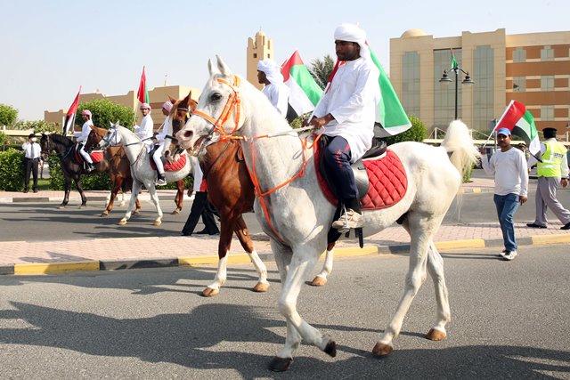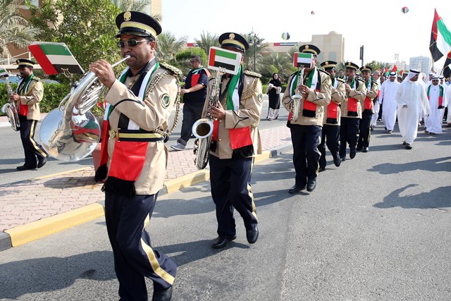 وكان توقيع الوثيقة إيذانا ببدء فعاليات الاحتفال، فتم إطلاق43 بالونا كبيرا، وآلاف البالونات التي تحمل ألوان علم الدولة في سماء عجمان، ثم بدأت مسيرة حاشدة تقدمتها الخيول، والفرقة العسكرية، وقاد المسيرة سمو الشيخ عمار بن حميد النعيمي، ولي عهد عجمان؛ وسمو الشيخ راشد بن حميد النعيمي، رئيس دائرة البلدية والتخطيط في عجمان؛ والأستاذ صالح محمد حسن، رئيس اللجنة المنظمة لماراثون الوفاء للقائد، والأستاذ خالد سعيد سلمان، عضو مجلس أمناء جامعة عجمان؛ بالإضافة إلى عمداء الكليات ومدراء الإدارات وحشد كبير من الأساتذة والموظفين وطلاب وطالبات الجامعة.