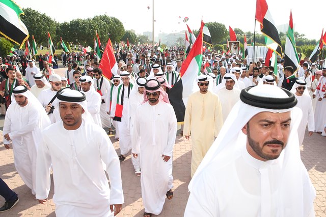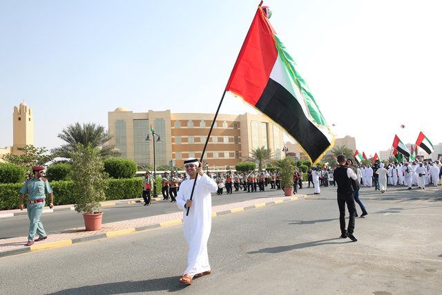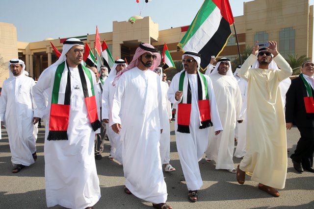 هذا ويأتي احتفال الجامعة بذكرى الاتحاد الـ 43، احتفالا بالمبادئ التي رسخها الآباء المؤسسون حين أعلنوا قيام الدولة لأول مرة في الثاني من ديسمبر 1971 بقيادة - المغفور له بإذن الله – الشيخ زايد بن سلطان آل نهيان. فدولة الإمارات العربية المتحدة قطعت أشواطا كبيرة في كافة المجالات خلال مسيرة الاتحاد، وخاصة في مجال التعليم العالي والبحث العلمي، فانتشرت المدارس والجامعات التي أصبح لها شأن كبير داخل الدولة وذلك بفضل الجهود الكبيرة التي أولتها القيادة الحكيمة للدولة بقيادة صاحب السمو الشيخ خليفة بن زايد آل نهيان رئيس الدولة، حفظه الله، وأخيه صاحب السمو الشيخ محمد بن راشد آل مكتوم نائب رئيس الدولة رئيس مجلس الوزراء حاكم دبي، رعاه الله، وإخوانهما أعضاء المجلس الأعلى للاتحاد حكام الإمارات حفظهم الله جميعا وسدد خطاهم.