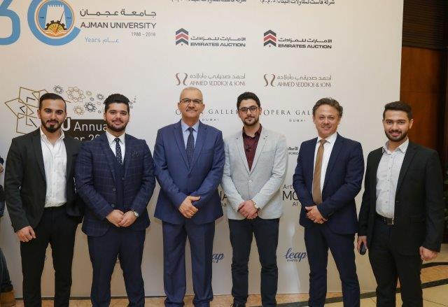 وجدير بالذكر أن تلك المقتنيات تشمل لوحة سيارة خاصة فئة عجمان مقدمة من سمو الشيخ عمار بن حميد النعيمي ولي عهد عجمان رئيس المجلس التنفيذي، وسيارة volkwagen كلاسيكية مهداه من الشيخ راشد بن حميد النعيمي رئيس دائرة البلدية والتخطيط في عجمان نائب رئيس مجلس أمناء الجامعة، وساعة hublot limited edition مهداه من مجموعة أحمد صديقي وأولاده، وجزء من كسوة الكعبة ومصحف مغلف بكسوة الكعبة مهداه من نادي الشباب العالمي للأعمال، ولوحة فنية للفنان pokas lampas مهداه من Dubai Opera Gallery ، ولوحات فنية بريشة الفنانة منى الجبالي، مسؤولة الفنون الجميلة في الجامعة.